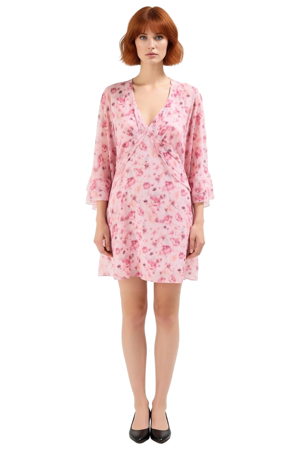 Ürün Özellikleri: Skater kalıp, polyester materyal, çiçekli desen, V yaka, yarasa kol, yoryo şifon kumaş, çok renkli, astarlı.