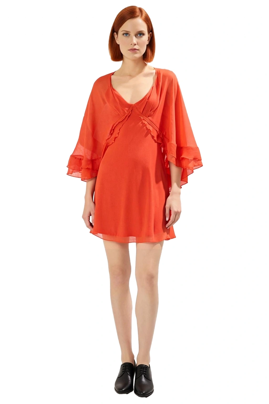 Zarif V yaka detayı, dekolte bölgesine hoş ve estetik bir vurgu yaparken, pelerinli detayı elbiseye hareketli ve akışkan bir görünüm kazandırır. Uzun yarasa kol tipi, hem şık bir duruş sergiler hem de gün boyu rahat hareket imkanı sunar, kollarınızda hafif bir esinti yaratır. Yoryo şifon dokuma kumaş tipi, hafif ve nefes alabilen yapısıyla sıcak havalarda bile serin kalmanızı sağlayarak üst düzey konfor sunar. Astarlı oluşu sayesinde iç göstermez ve kendinizi her an güvende hissetmenizi garantiler. Yüksek kaliteli %100 polyester materyali, dayanıklılığı ve kolay bakımıyla uzun ömürlü kullanım vaat eder, rengini ve formunu korur. T10 yıkama talimatı sayesinde pratik bir şekilde temizlenebilir ve ütü gerektirmez.