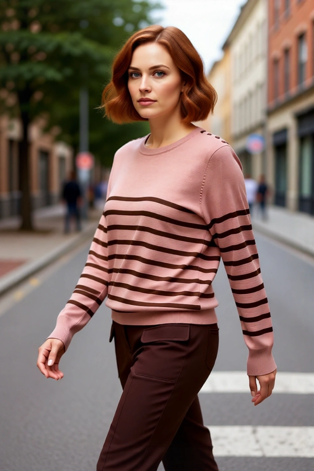 Bu Kadın Çizgili Bisiklet Yaka Triko Kazak, relaxed kalıbı sayesinde gün boyu süren rahatlık ve hareket özgürlüğü sunarken, modern ve şık bir görünüm yakalamanızı sağlar. Yüksek kaliteli akrilik materyalden üretilen bu kazak, yumuşak dokusuyla cildinize nazikçe temas eder ve soğuk havalarda sizi sıcacık tutar. Canlı çizgili deseni, dinamik ve enerjik bir stil yansıtırken, bordo rengi sonbahar ve kış kombinlerinize derinlik katıyor. Basic silueti ile her gardıroba kolayca adapte olan bu parça, günlük şıklığınızın vazgeçilmezi olmaya adaydır.