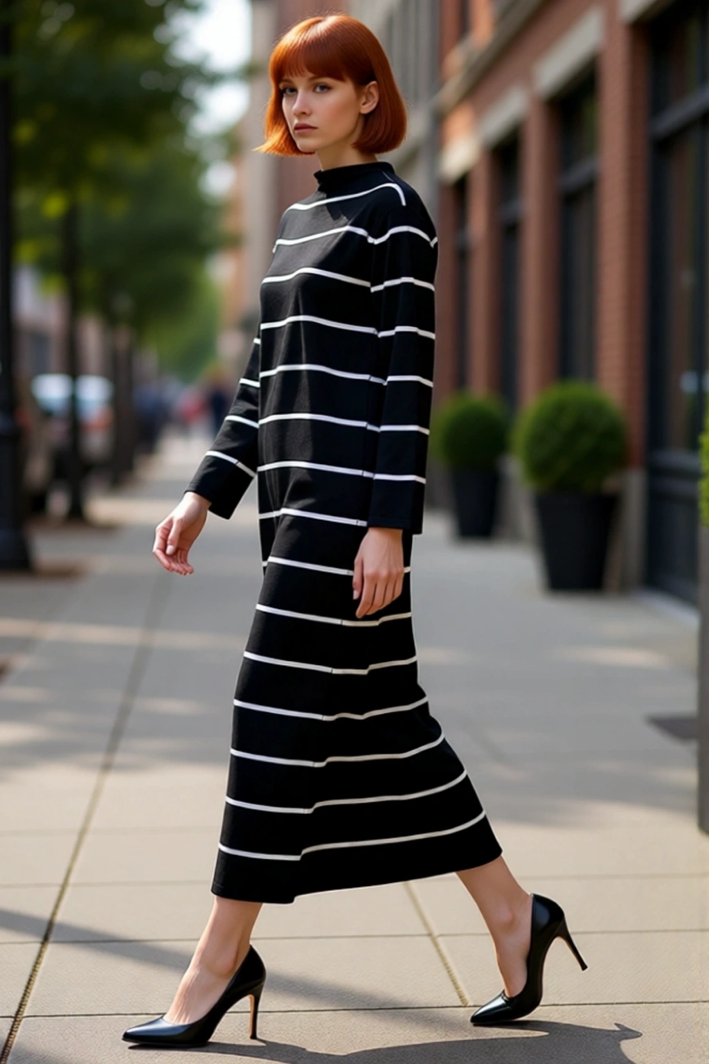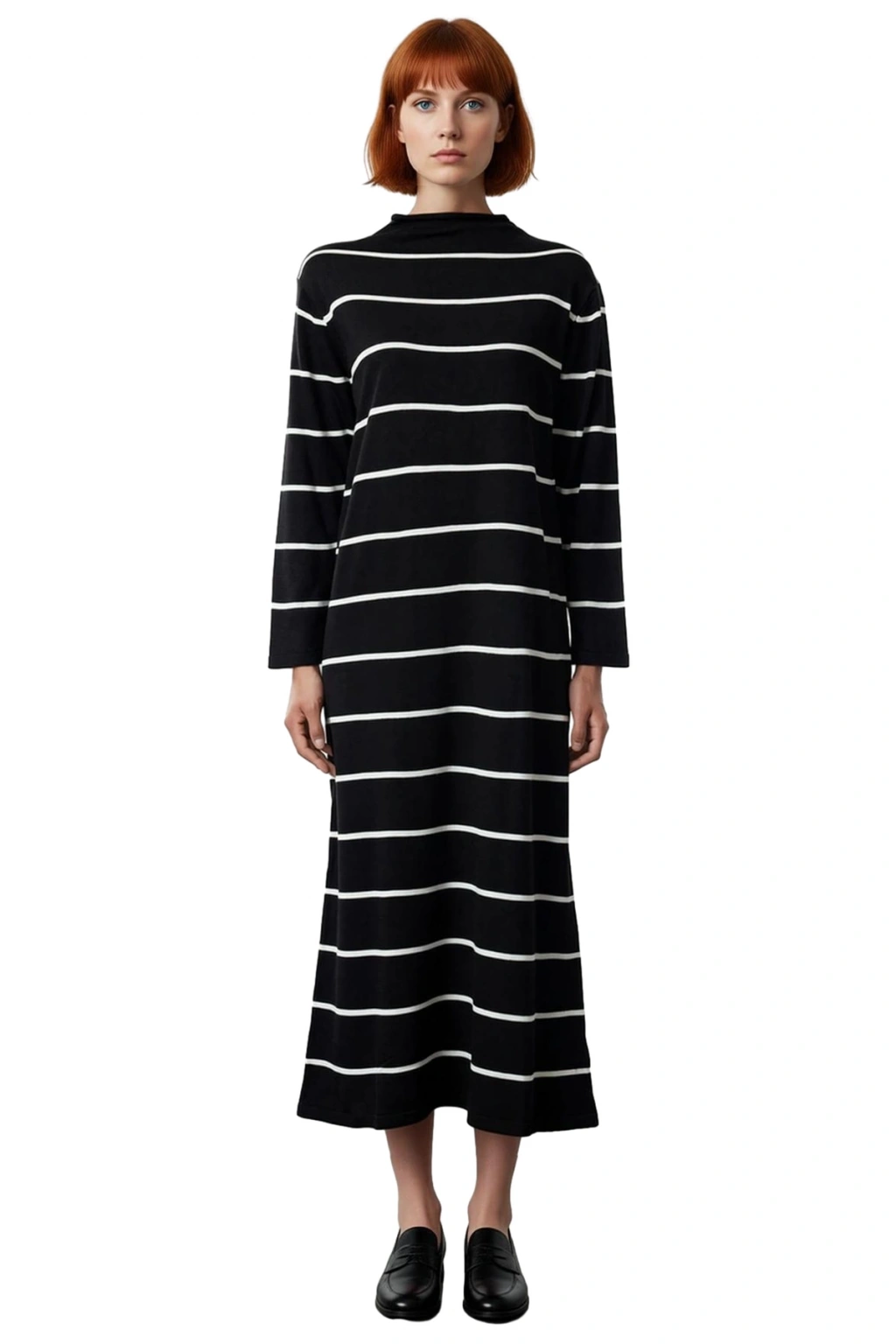 Bu elbise, maxi boyu ve A-line kesimi ile farklı vücut tiplerindeki kadınların beğenisine sunulmuştur. Kış ve ilkbahar geçiş dönemlerinde, günlük kombinlerinizin yıldız parçası olabilir. Şık botlar veya zarif topuklu ayakkabılar ile tamamlayarak, ofis ortamından davetlere kadar birçok farklı alanda stilinizi yansıtabilirsiniz. Cool & Comfort personasına uygun bu elbise, her anınızda size eşlik edecek.