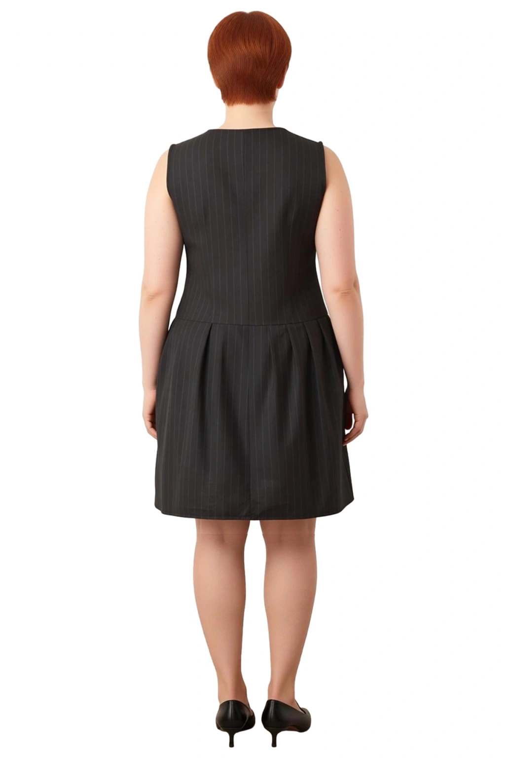 Bu şık kadın jile elbise, modern gardıropların vazgeçilmez parçası olmaya aday. Dokuma kumaşı ve zarif çizgili deseniyle hem iş ortamında hem de günlük yaşamda rahatlığı ve şıklığı bir arada sunar. Poliviskon materyal bileşimi sayesinde gün boyu konfor sağlarken, siyah rengi ve ince çizgileri sofistike bir görünüm kazandırır. Düğme detaylı ön kısmı ve göğüs cepleri tasarıma özgün bir hava katarken, kolsuz yapısı İlkbahar ve Sonbahar aylarında serin ve rahat bir kullanım sunar.
