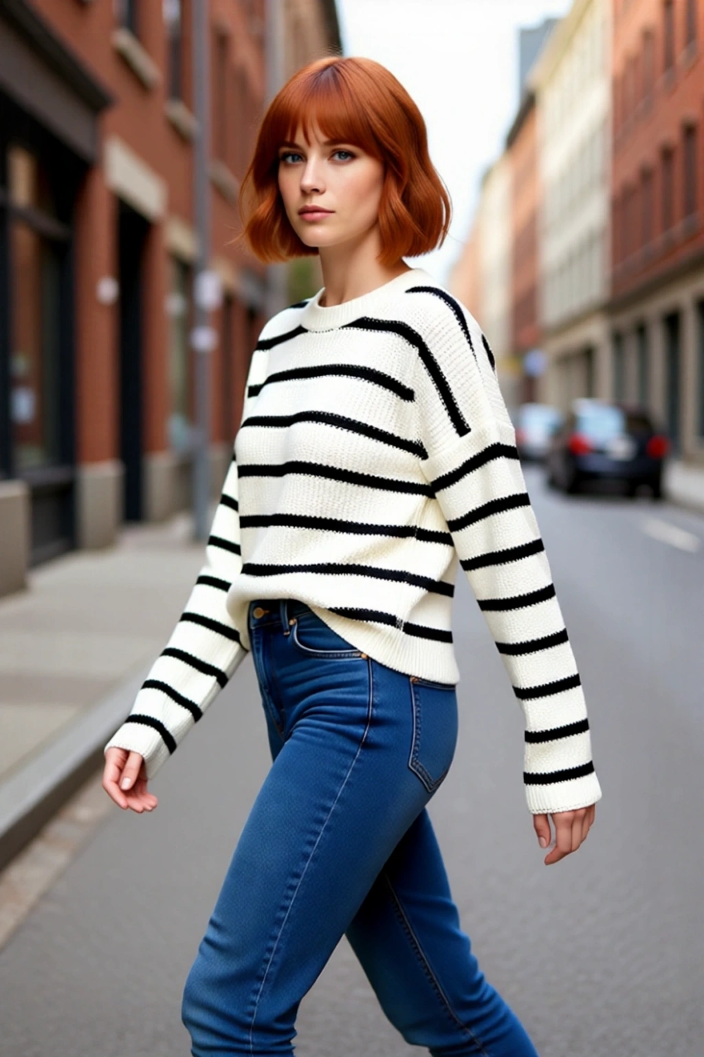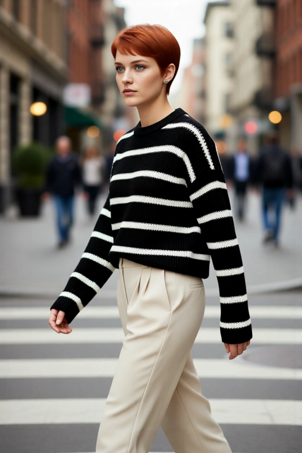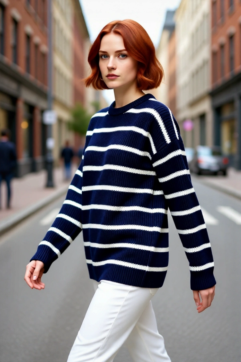Bu zarif kadın çizgili oversize triko kazak, kış ve sonbahar aylarında hem şık hem de sıcacık kalmak isteyenler için tasarlandı. Geniş kalıbı, modern ve rahat bir siluet çizerken, vücut hatlarını nazikçe örterek her bedene uyum sağlar. Üstün kaliteli akrilik materyali, soğuk hava koşullarına karşı etkili bir koruma sunarken, gün boyu süren yumuşaklık ve konfor hissi verir. Gri rengin sakin tonları ile belirgin çizgili deseni, minimalist ve aynı zamanda dinamik bir stil yaratarak her kombine kolayca eşlik eder. Basic silueti ile gardırobunuzun temel parçalarından biri olacak.