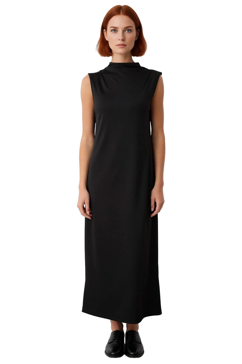 Dik yaka tasarımı, elbiseye modern ve sofistike bir çizgi katarken, astarsız yapısı sayesinde hafif ve ferah bir kullanım sunar. Örme kumaş tipi, esnekliği ve vücuda nazikçe oturmasını sağlarken, dalgıç/scuba dokuma tipi sayesinde elbise formunu korur ve kolayca buruşmaz. Standart kol kesimi, kolsuz tasarımla birleşerek sade ve şık bir görünüm sunar. Bakım kolaylığı sayesinde pratik bir kullanım sunar; makinede yıkanabilir özelliği ile zaman kazandırır. Ramadan koleksiyonunun şıklığını yansıtan bu elbise, özel anlarınızda ve günlük rutininizde size eşlik edecek.