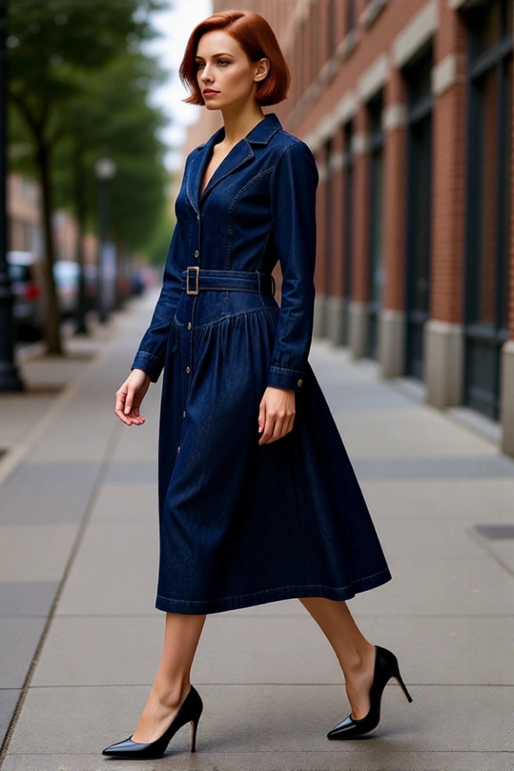 Bu maxi boy denim elbise, shift kalıbı sayesinde farklı vücut tiplerine kolayca uyum sağlar. Casual/günlük ortamlardan iş toplantılarına veya şık akşam yemeklerine kadar geniş bir kullanım alanına sahiptir. Botlar veya spor ayakkabılarla rahat bir stil, topuklu ayakkabılarla ise daha zarif bir kombin oluşturabilirsiniz. İlkbahar ve sonbahar aylarının vazgeçilmezi olan bu elbise, hafif kış günlerinde de katmanlı giyimle tercih edilebilir.