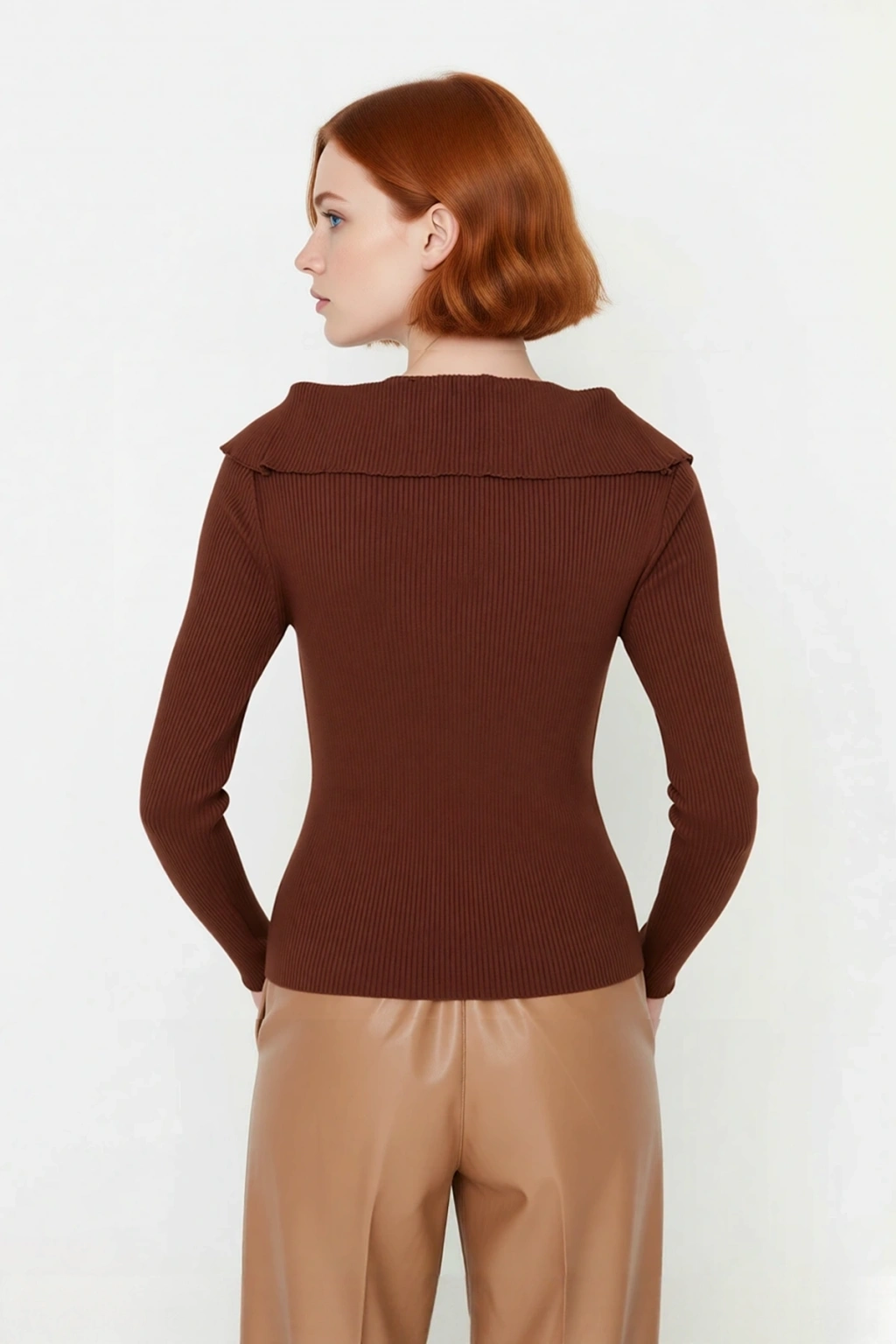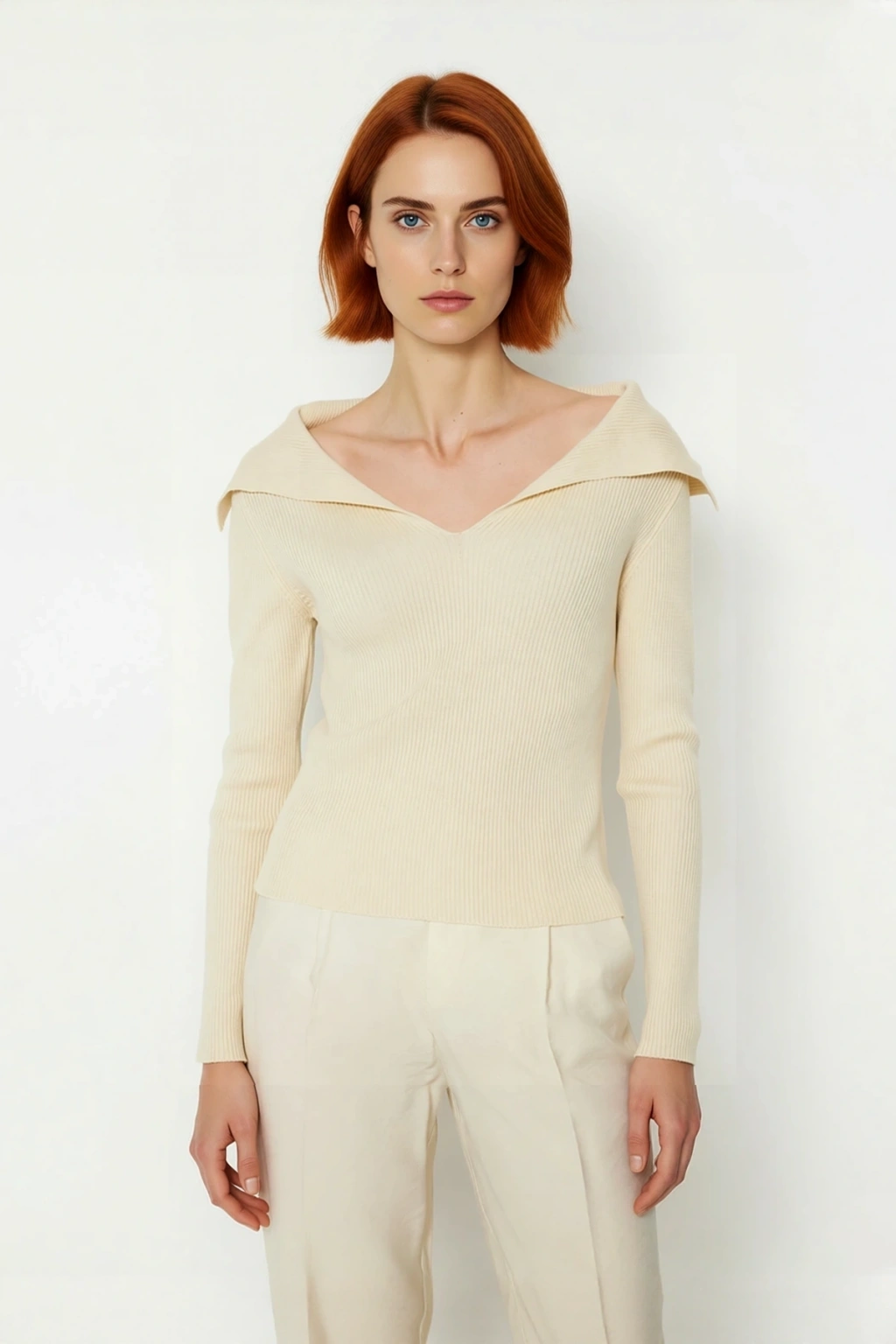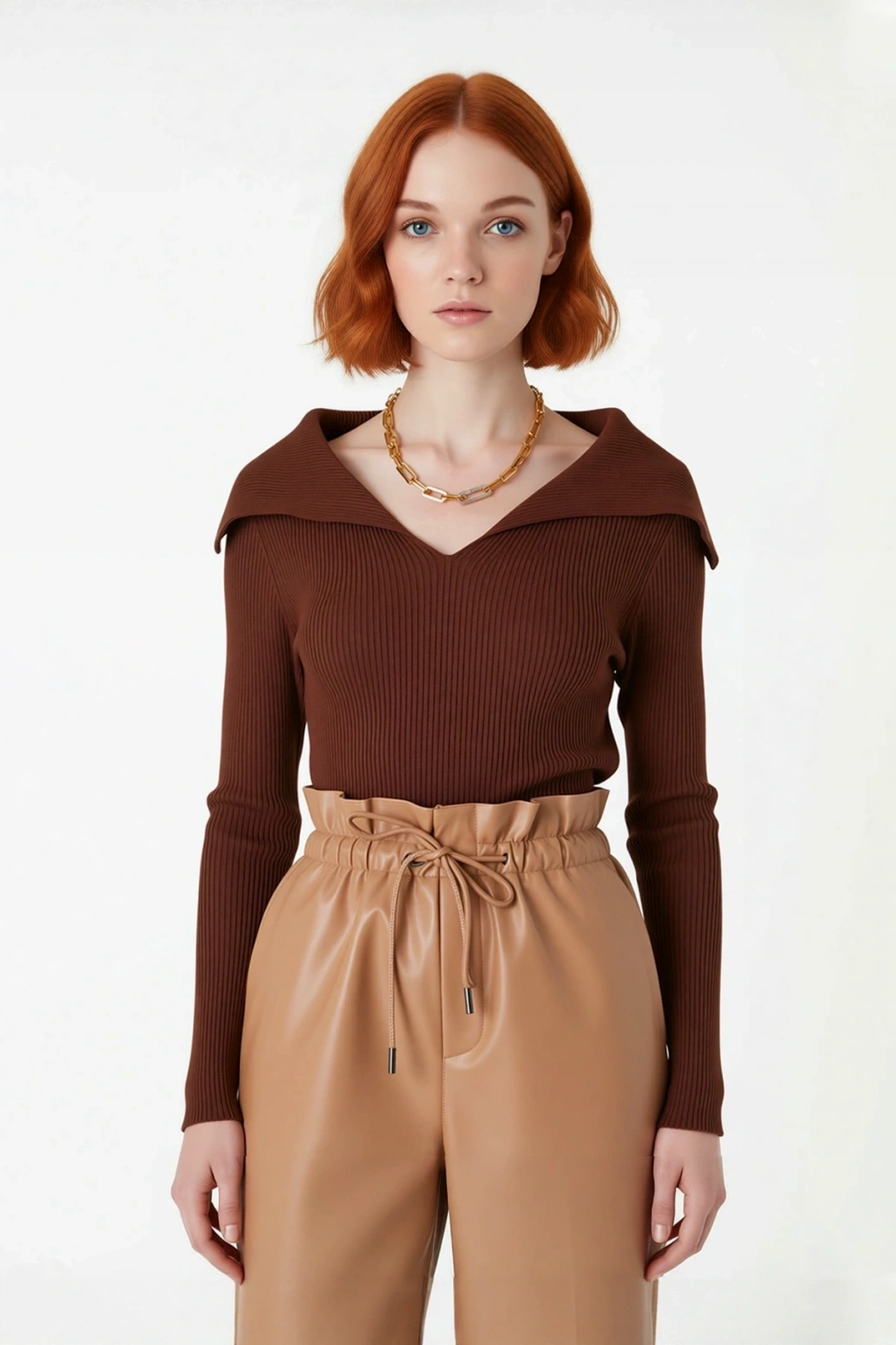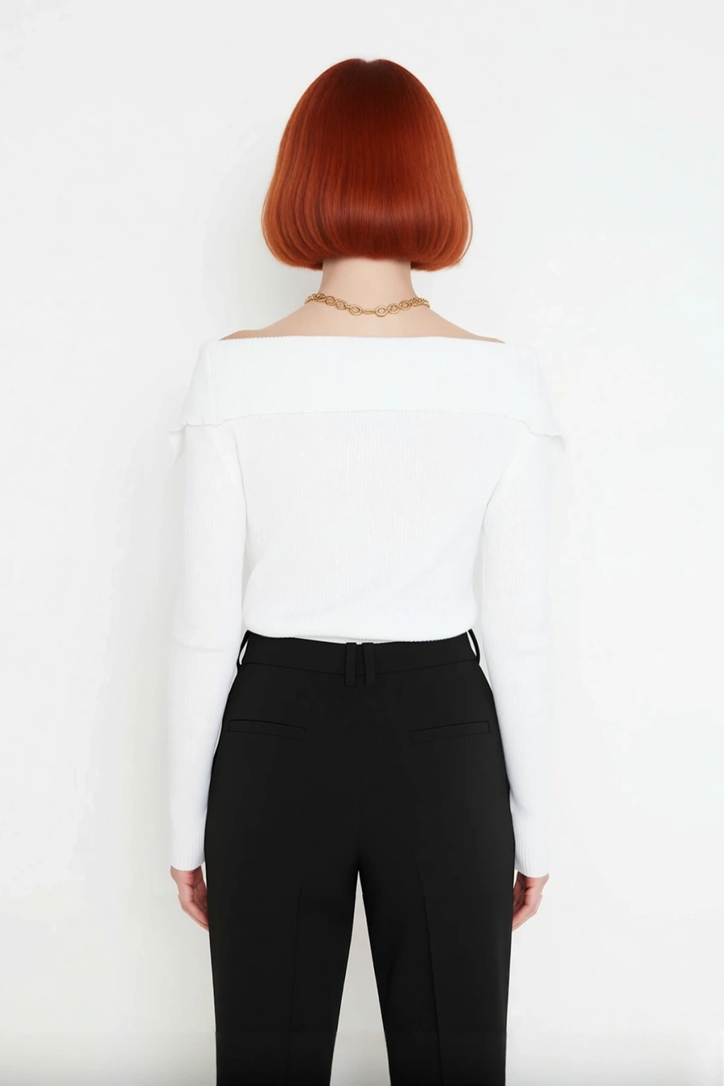 Devrik yaka tasarımı, omuzları zarifçe açıkta bırakarak feminen ve çekici bir duruş sergiler. Standart uzun kol tipi, günlük kullanımda hareket özgürlüğü sağlarken, crop boy kesimi modern ve genç bir hava katıyor. Cepsiz tasarımı sayesinde sade ve akıcı bir çizgiye sahip olan bu bluz, triko kumaşının esnekliği ile vücudunuzla bütünleşir. Makinede yıkanabilir özelliği sayesinde bakımı son derece kolaydır ve polyester materyali sayesinde renk solmalarına karşı dayanıklıdır. Bu basic siluet, uzun ömürlü kullanım vadeden kaliteli işçilikle üretilmiştir.