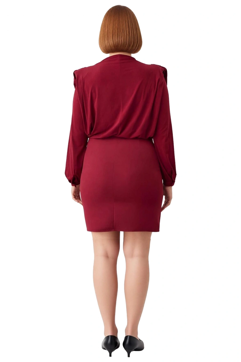Ürün Özellikleri: A-line kalıp, polyester elastan materyal, düz desen, dik yaka, balon kol, dokuma kumaş, bordo renk, mini boy.