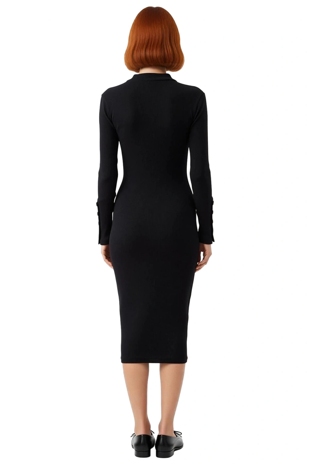 Midi boyu, iş toplantılarından arkadaş buluşmalarına kadar geniş bir kullanım alanı sunar. Bu bodycon elbise, topuklu ayakkabılarla şık, spor ayakkabılarla ise daha casual bir görünüm elde etmenizi sağlar. Kış, sonbahar ve ilkbahar mevsimlerinde gardırobunuzun en gözde parçalarından biri olmaya adaydır.