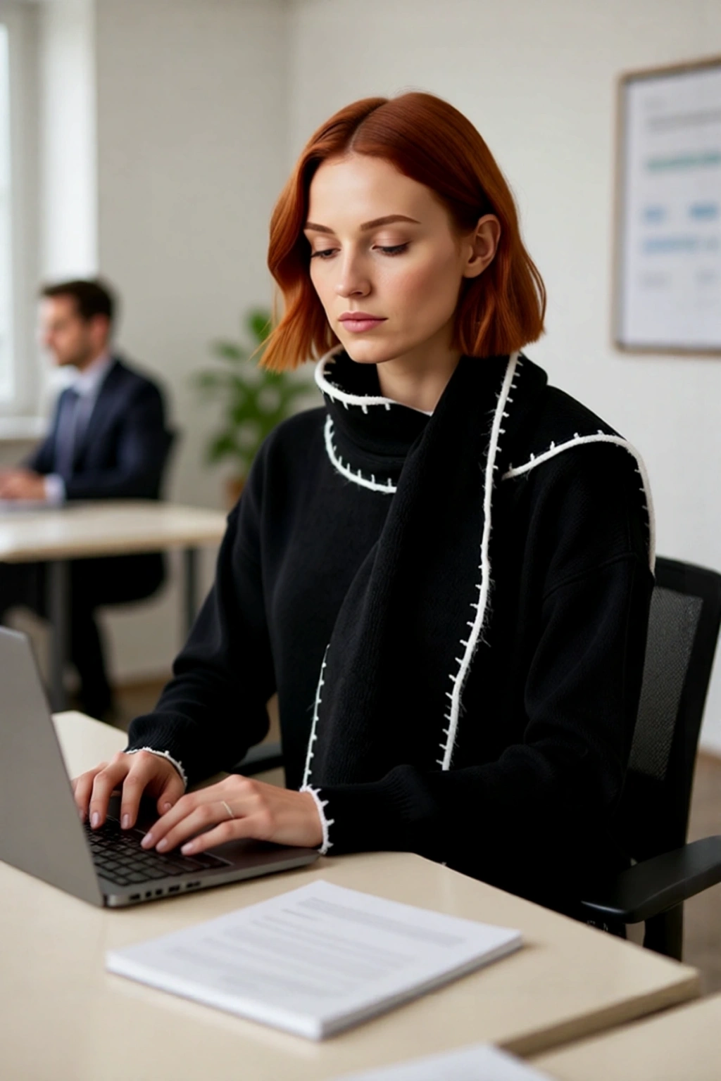 Kış mevsiminin vazgeçilmezi olacak bu kadın dik yaka oversize triko kazak, şıklığı ve konforu bir araya getiriyor. %75 akrilik ve %25 polyester karışımı materyali sayesinde cildinize nazik bir dokunuş sunarken, soğuk havalarda sizi sıcacık tutar. Kazakla uyumlu renk bloklu deseni ve entegre şal aksesuarı, modern bir hava katarken siyah rengin asil duruşunu ön plana çıkarır. Günlük giyimden özel anlara kadar geniş bir kullanım yelpazesi sunan bu parça, gardırobunuzun en gözde parçalarından olacak.