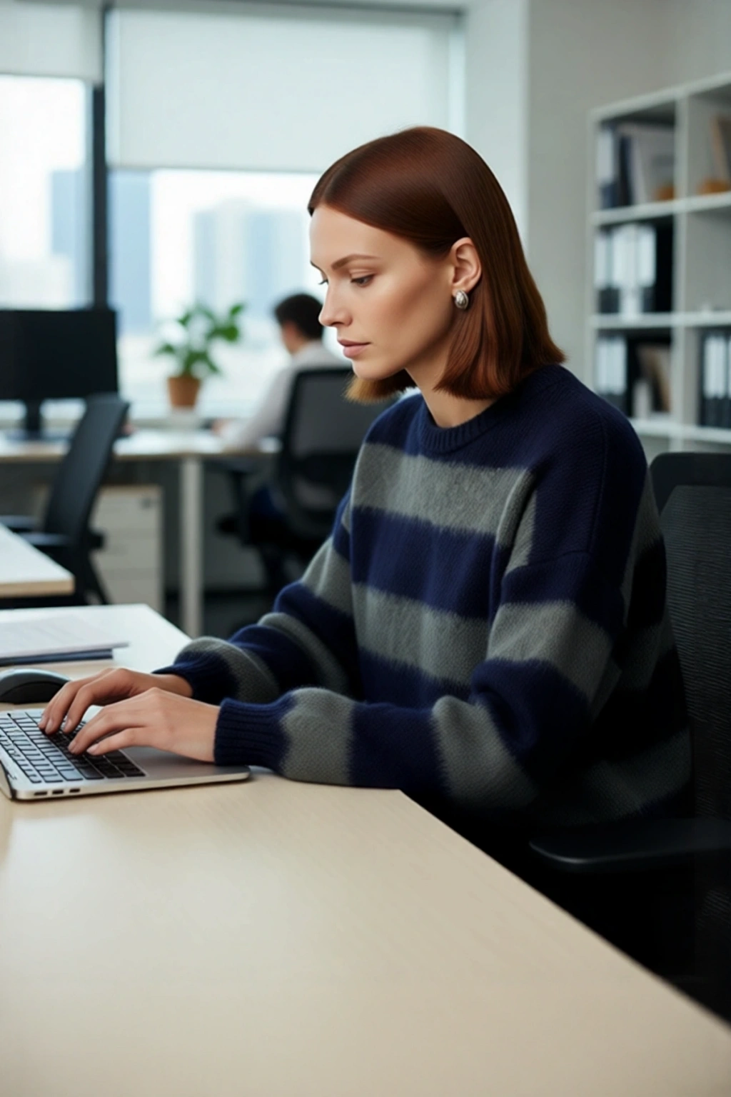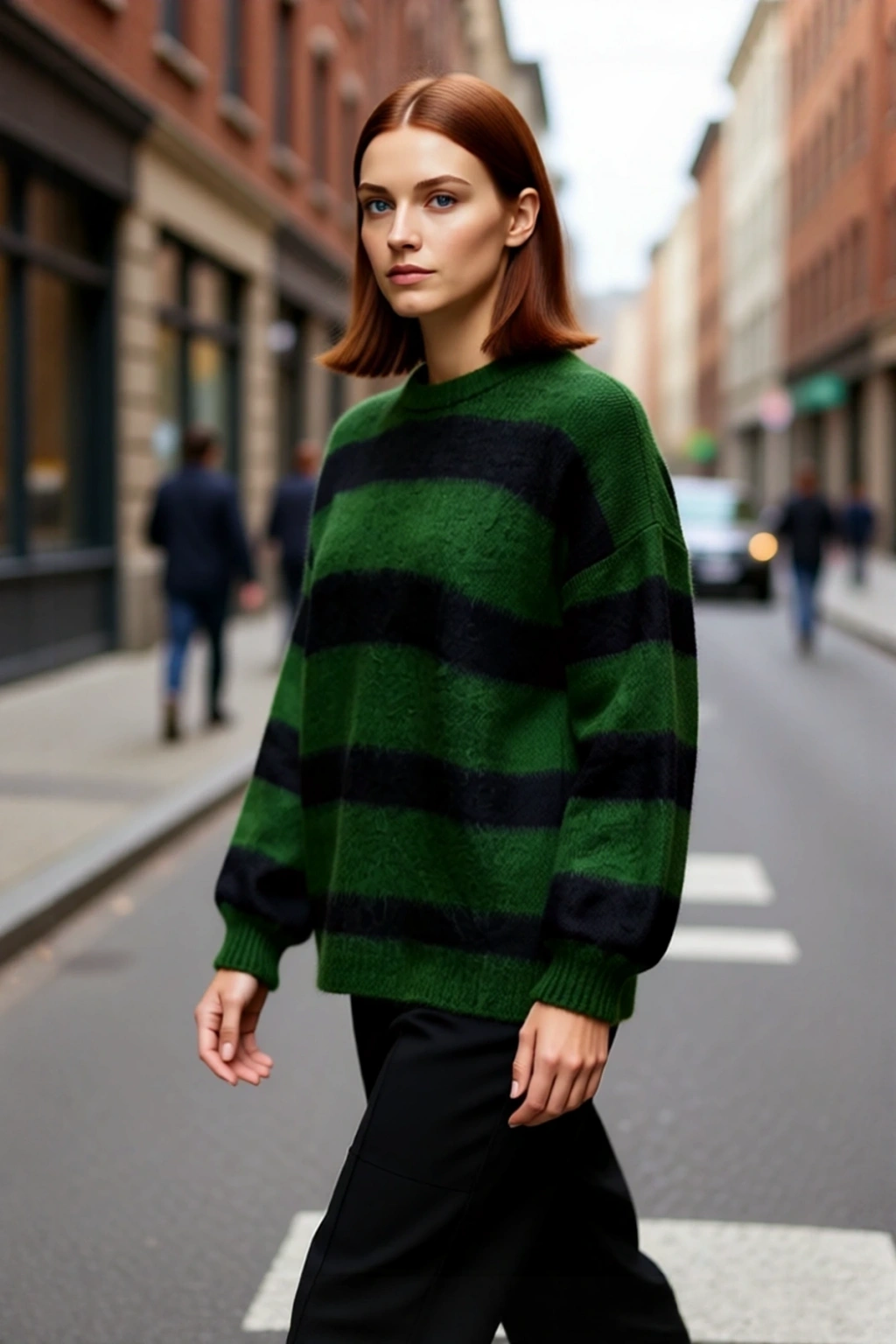 Bu kadın triko kazak, modern oversize kesimi ve göz alıcı çizgili deseniyle dikkat çekiyor. %80 akrilik ve %20 polyester materyal bileşimi, ürüne yumuşak bir doku kazandırırken, aynı zamanda kış ve sonbahar aylarında sizi sıcak tutar. Lacivert ve gri tonlarındaki şık çizgiler, kazaka dinamik ve enerjik bir hava katarak, günlük kombinlerinize stil sahibi bir dokunuş ekler. Bisiklet yaka tasarımı, zamansız bir klasik sunarken, Cool & Comfort persona tanımına mükemmel uyum sağlar. Cepsiz ve düz yapısıyla minimalist bir şıklık sunar.
