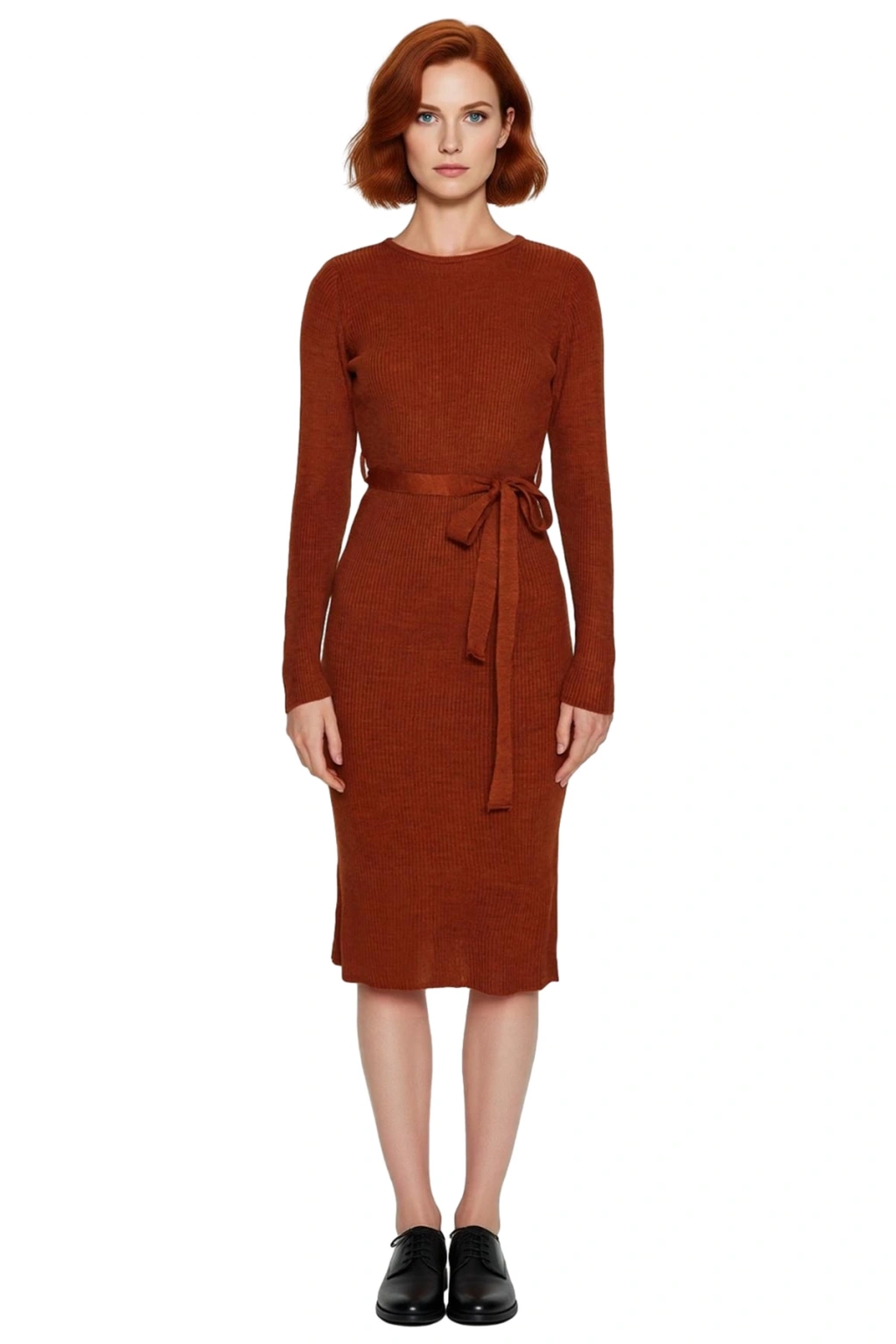 Kadın gardırobunun vazgeçilmezi olacak bu akrilik triko midi elbise, bodycon kalıbı ile vücuda tam oturarak modern ve çekici bir görünüm sunar. Düz deseni sayesinde zamansız bir şıklık yakalarken, kuşaklı kapama şekli belinizi vurgulayarak feminen hatları ortaya çıkarır. Uzun standart kolları ve midi boyu ile hem ofis şıklığı hem de günlük kullanım için idealdir. İlkbahar ve sonbahar geçiş mevsimlerinde serin havalara karşı zarif bir koruma sağlar.