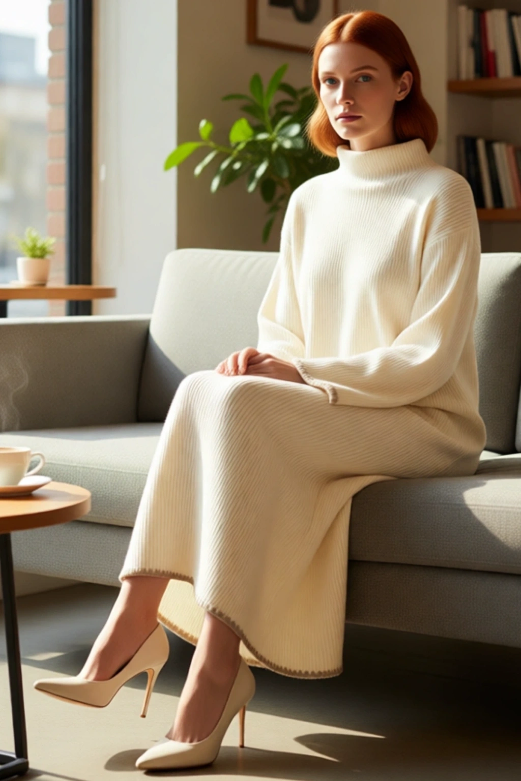 Elbisenin dik yaka tasarımı, soğuk havalarda boynunuzu korurken şık bir duruş sergilemenizi sağlar. Düşük ve uzun kol yapısı, rahat hareket imkanı sunar ve modern bir siluet oluşturur. Çift plaka dokuma tipi sayesinde hem dayanıklı hem de yumuşak bir yapıya sahiptir. Astarsız oluşu, elbiseyi katmanlı giyime uygun hale getirir ve nefes alabilirliğini artırır. Bakım talimatlarına uygun yıkandığında uzun yıllar formunu koruyarak gardırobunuzun vazgeçilmez parçası haline gelir.