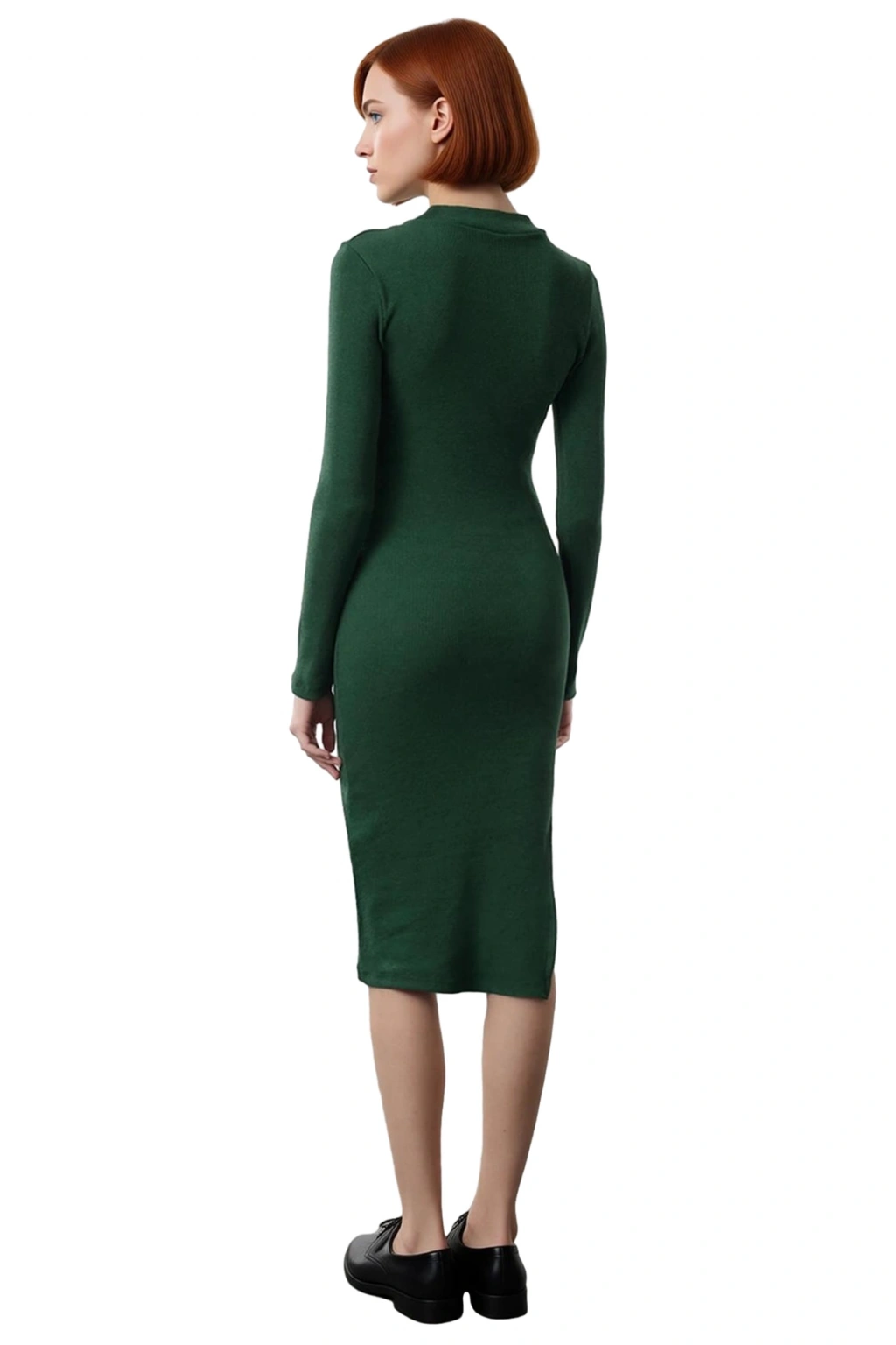 Kadın düz desen bodycon midi elbise, modern ve kendinden emin bir duruş sergileyen tasarımıyla her ortamda dikkat çeker. Vücudu saran bodycon kalıbı, feminen hatları zarifçe ortaya çıkarırken, rejenere kaşkorse dokusu ile gün boyu esneklik ve üst düzey konfor sunar. Bordo renginin asil duruşu, yırtmaç detayıyla birleşerek hem şık hem de dinamik bir stil yaratır ve size eşsiz bir hava katar. Bu elbise, Cool & Comfort felsefesiyle tasarlanmış olup, şıklığından ödün vermeden rahat etmek isteyen kadınların favorisi olacak özel bir parçadır.