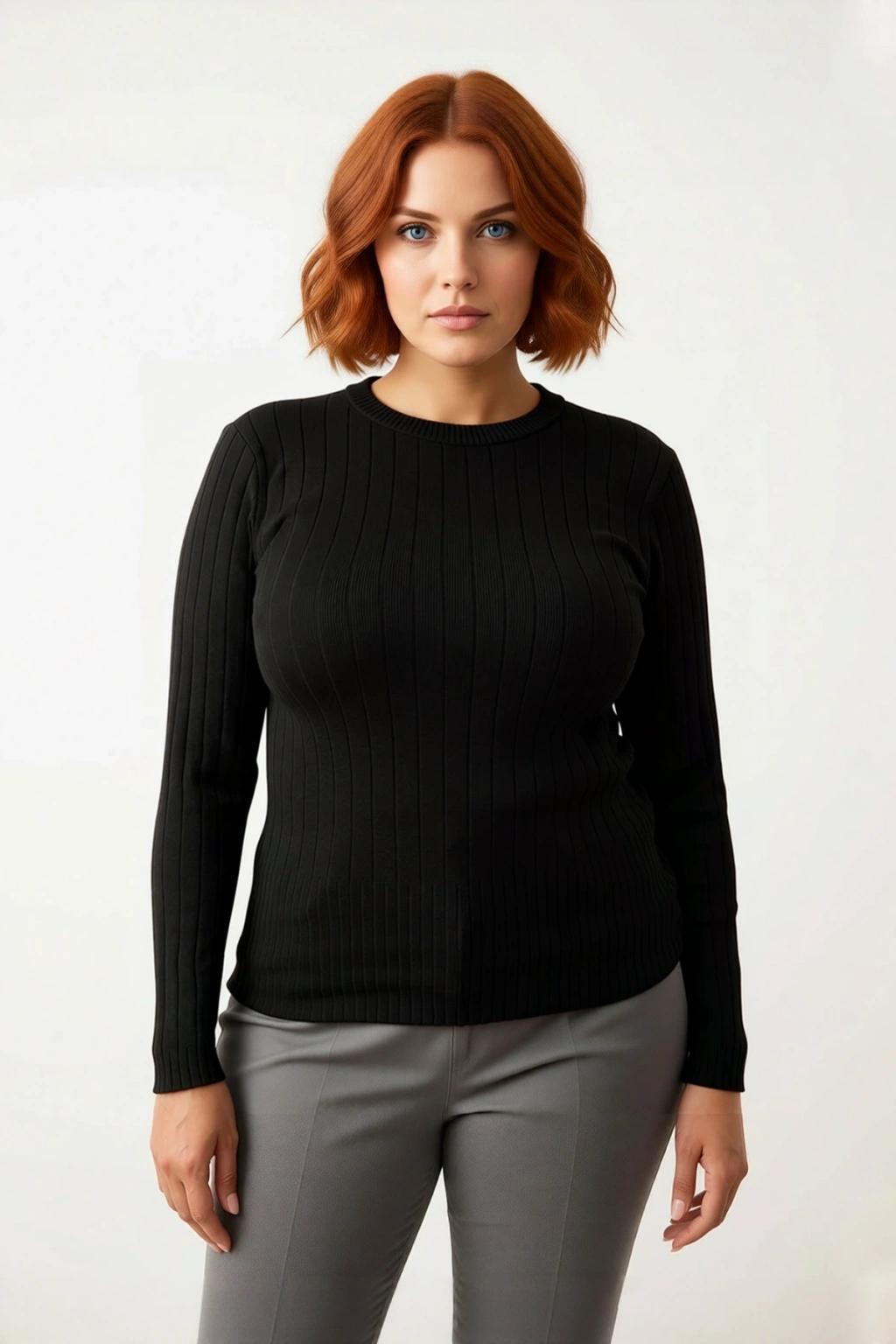 Bisiklet yaka detayı, klasik ve zamansız bir görünüm sağlarken, boyun kısmında herhangi bir sıkıntı yaratmaz; standart uzun kolları ise soğuk havalarda yeterli sıcaklık ve koruma sunar. Fitilli dokuma tipi, bluza estetik bir doku ve derinlik katarken, triko kumaşının esnekliği gün boyu hareket özgürlüğü ve esneklik sağlar. Regular boyu ile hem pantolon veya etek üstüne rahatça giyilebilir hem de içine kolayca sokulabilir. Yüksek kaliteli polyester materyali sayesinde ürün dayanıklıdır, formunu uzun süre korur ve kolay ütülenme özelliğiyle pratik bir kullanım sunar.