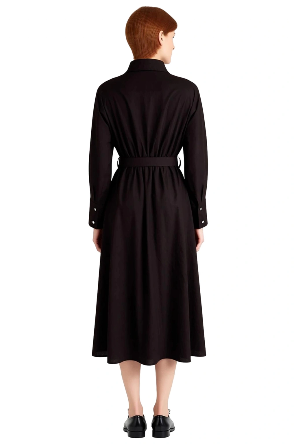 Klasik gömlek yaka detayı, elbiseye sofistike bir hava katarken, uzun yarasa kol tipi hareket özgürlüğü sağlar ve modern bir siluet oluşturur. Kuşaklı yapısı sayesinde belinizi istediğiniz gibi şekillendirebilir, farklı stiller yaratabilirsiniz. Poplin dokuma kumaşın hafif ve dayanıklı yapısı, astarsız tasarımıyla birleşerek dört mevsim rahatlıkla giyilebilir bir parça sunar. T80 yıkama talimatı sayesinde kolayca temizlenebilir ve uzun ömürlü kullanım imkanı tanır. Kaliteli materyali ile uzun yıllar gardırobunuzda yerini korur.