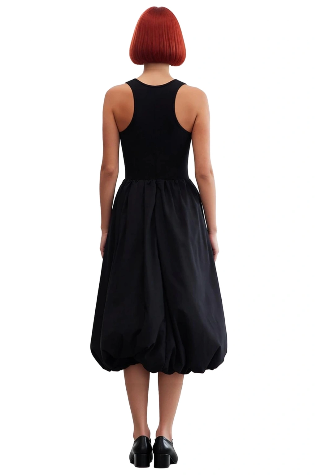 Bu kadın elbisesi, özel anlarınıza modern ve zarif bir dokunuş katmak üzere tasarlandı. Üst bedeni, vücuda kusursuzca oturan fitted kalıbıyla sofistike bir görünüm sunarken, belden genişleyerek inen volümlü balon eteğiyle dinamik ve feminen bir hava yaratır. Yüksek kaliteli polyester karışımlı materyali sayesinde gün boyu konfor sağlarken, poplin dokuma kumaşı elbiseye tok ve şık bir duruş kazandırır. Düz deseni ve baskısız yapısı, zamansız bir şıklık arayanlar için idealdir.