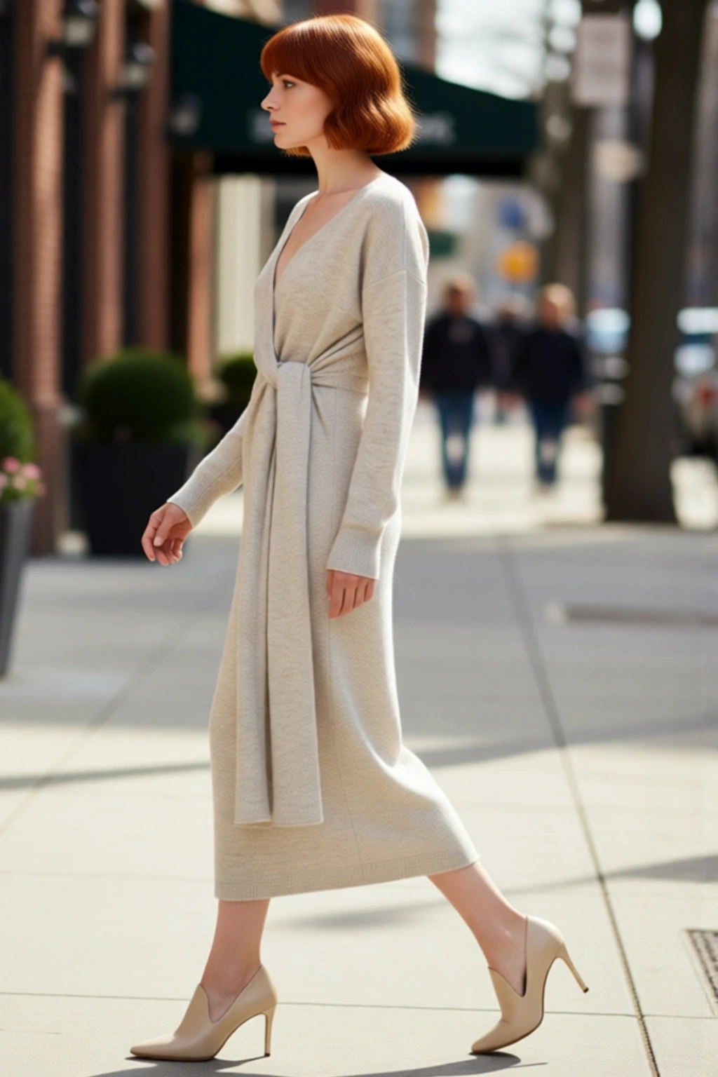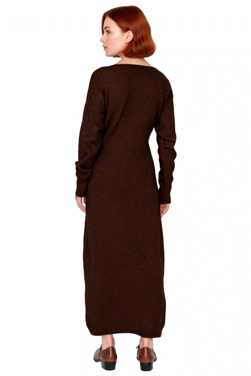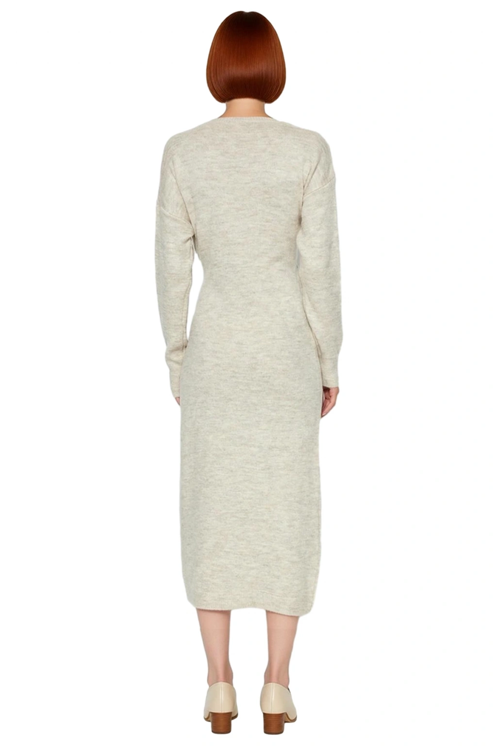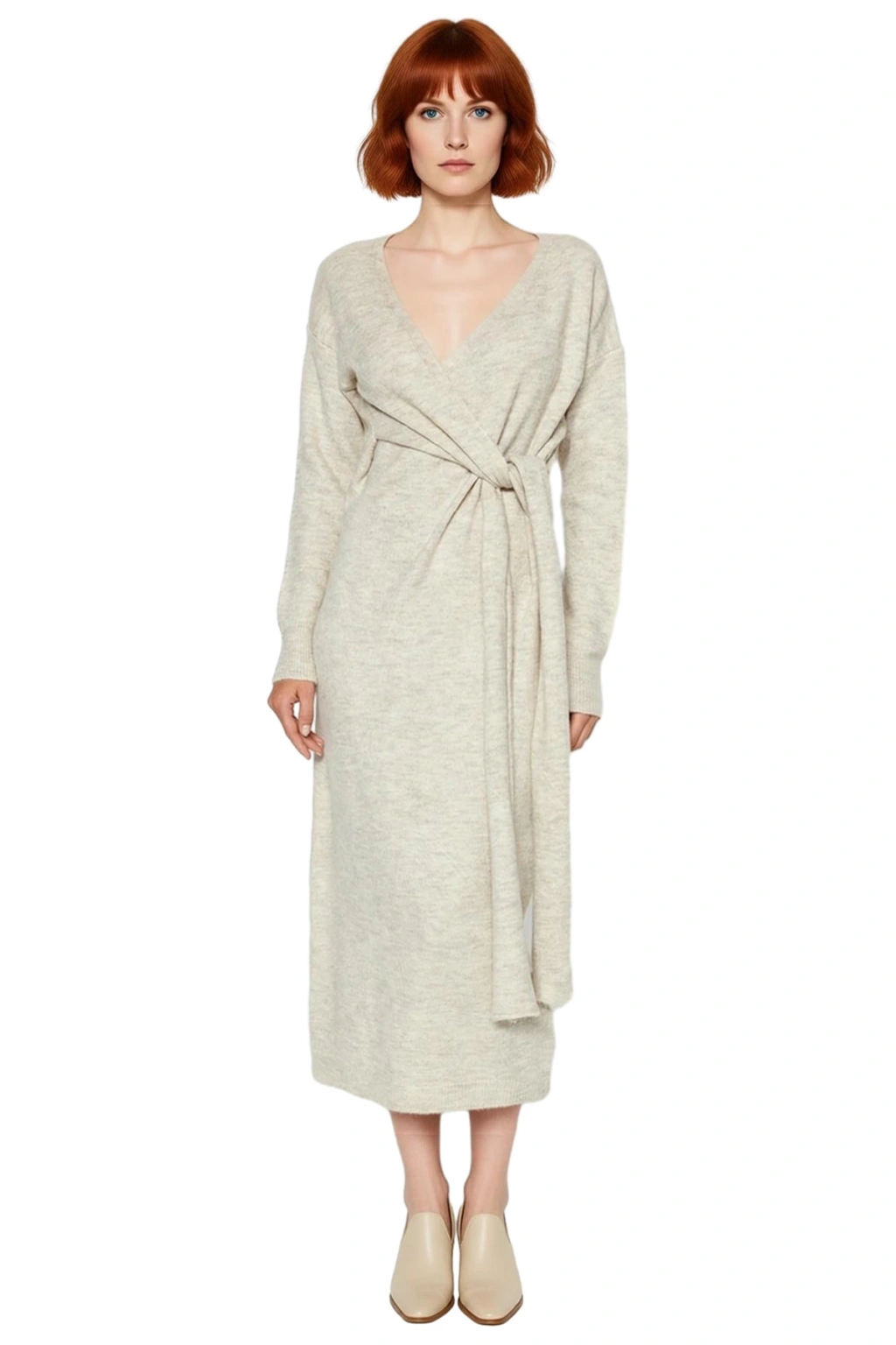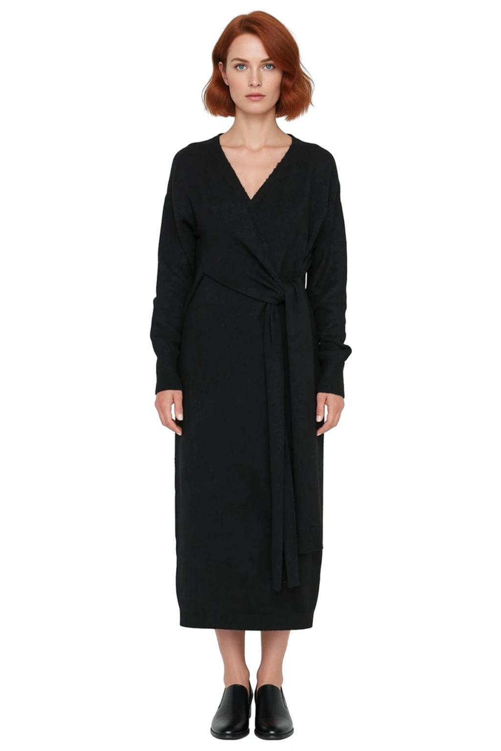 Midi boyu ve kruvaze silueti, farklı vücut tiplerine mükemmel uyum sağlar ve casual/günlük kombinleriniz için harika bir temel oluşturur. Kış aylarında şık botlarla, bahar geçişlerinde ise zarif topuklular veya spor ayakkabılarla tamamlanabilir. İş ortamından arkadaş buluşmalarına kadar geniş bir kullanım alanına sahiptir. Bu çok yönlü elbise, soğuk mevsimlerin kurtarıcı parçası olmaya adaydır.