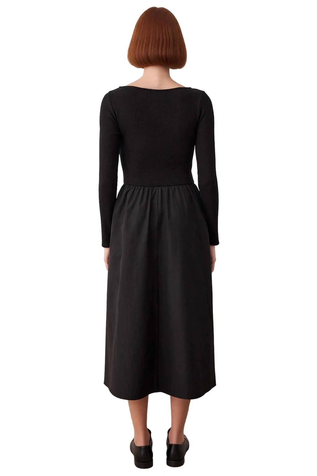 Kayık yaka tasarımı, boyun ve omuz çizgisini nazikçe vurgulayarak sofistike bir dokunuş katarken, uzun standart kolları soğuktan korunmanızı ve rahatça hareket etmenizi sağlar. Üst bedendeki örme kumaşın yumuşaklığı ve alt bedendeki Terrycotton dokuma kumaşın dökümlü yapısı, elbiseye benzersiz bir karakter kazandırır. 100% polyester materyal bileşeni sayesinde dayanıklı, kırışmaya karşı dirençli ve kolay bakımlıdır. Ürünün makinede yıkanabilir olması, pratikliğiyle öne çıkar.