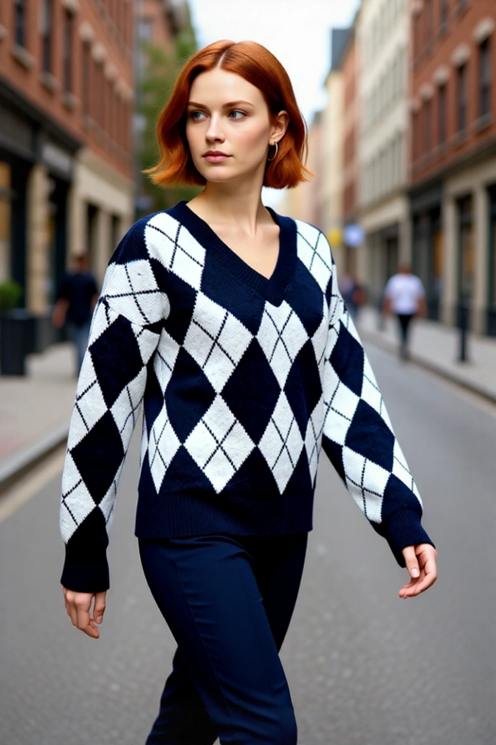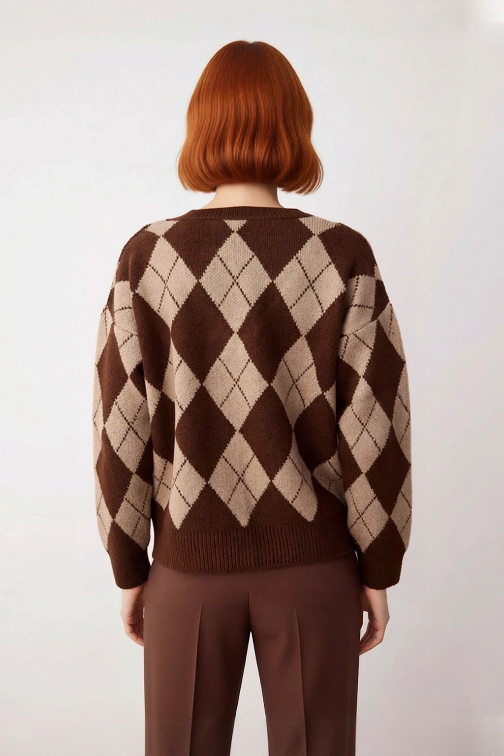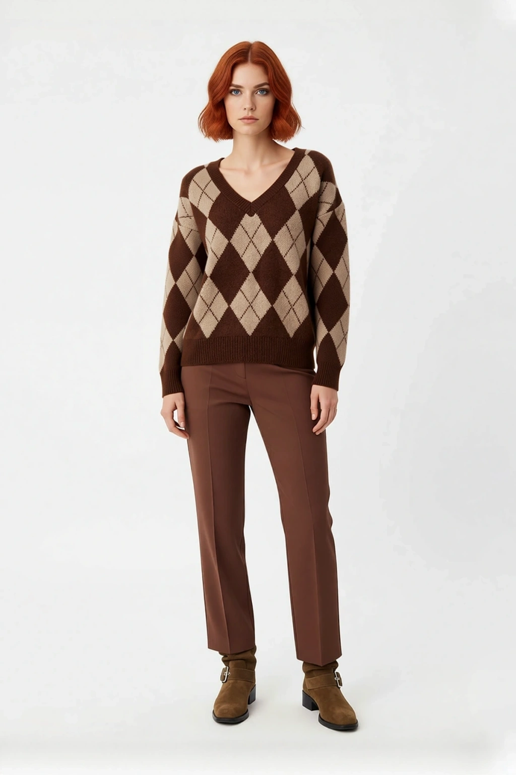 Bu kadın oversize V yaka baklava desenli triko kazak, modern ve rahat bir stil arayanlar için idealdir. Geniş kesimiyle gün boyu hareket özgürlüğü sunarken, 76% akrilik ve 24% polyester materyal bileşeni sayesinde yumuşacık dokusuyla sizi sıcak tutar. Ekru ve gri renklerin uyumuyla klasikleşen baklava deseni, kış kombinlerinize sofistike bir hava katarken, cool ve comfort personasını mükemmel yansıtır. Kalın yapısı soğuk havalarda üst düzey koruma sağlar.