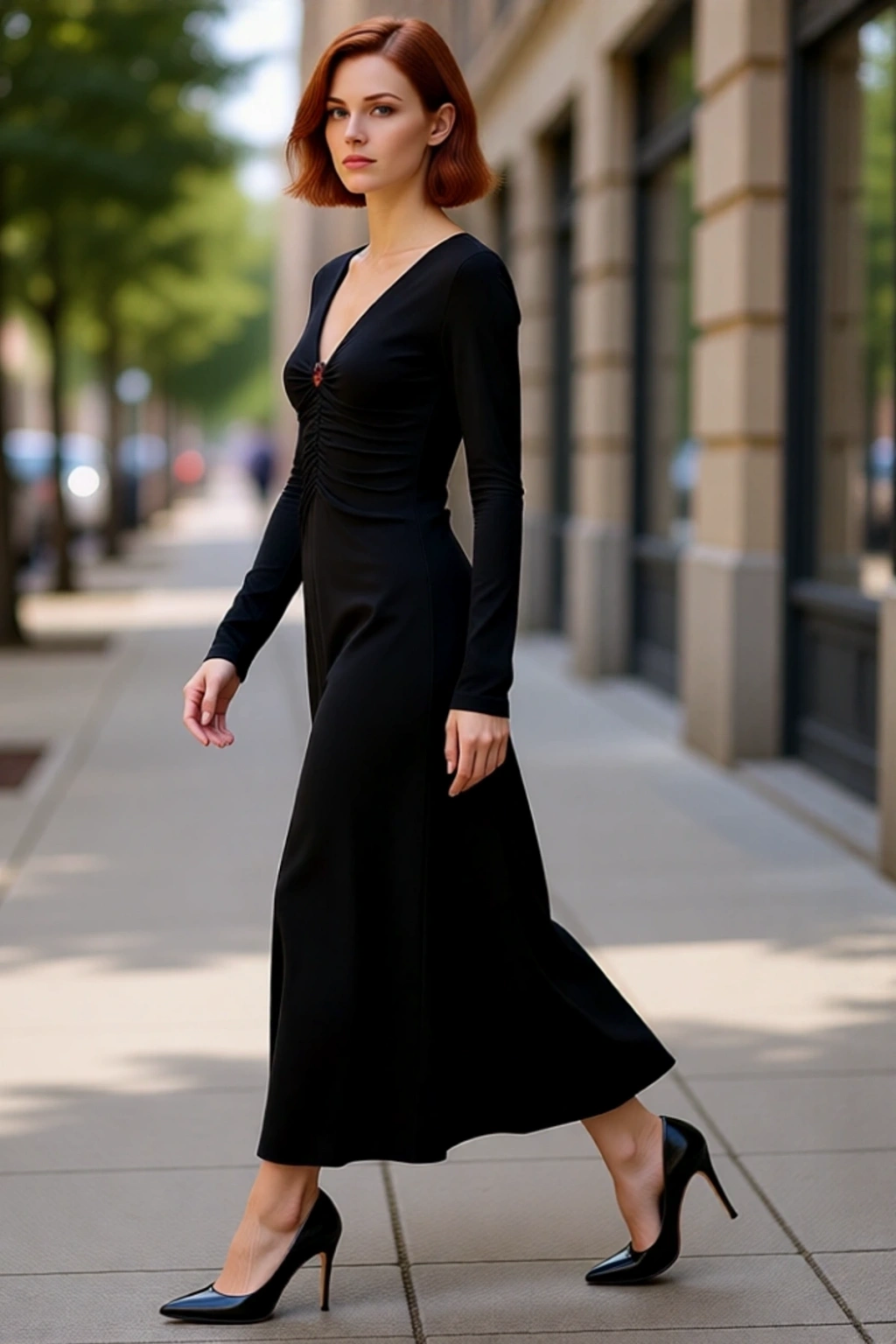 Bu çok yönlü elbise, A-line kesimiyle farklı vücut tiplerine uyum sağlayarak özgüvenli bir duruş sergiler. Gündüz iş toplantılarından, gece özel davetlere kadar geniş bir kullanım alanı sunar. Kış sezonunda kalın çoraplar ve uzun çizmelerle kombinleyerek soğuk havalarda bile stilinizi konuşturabilirsiniz. Şık bir mont veya ceketle tamamlayarak her zaman göz alıcı bir stil yakalayın.