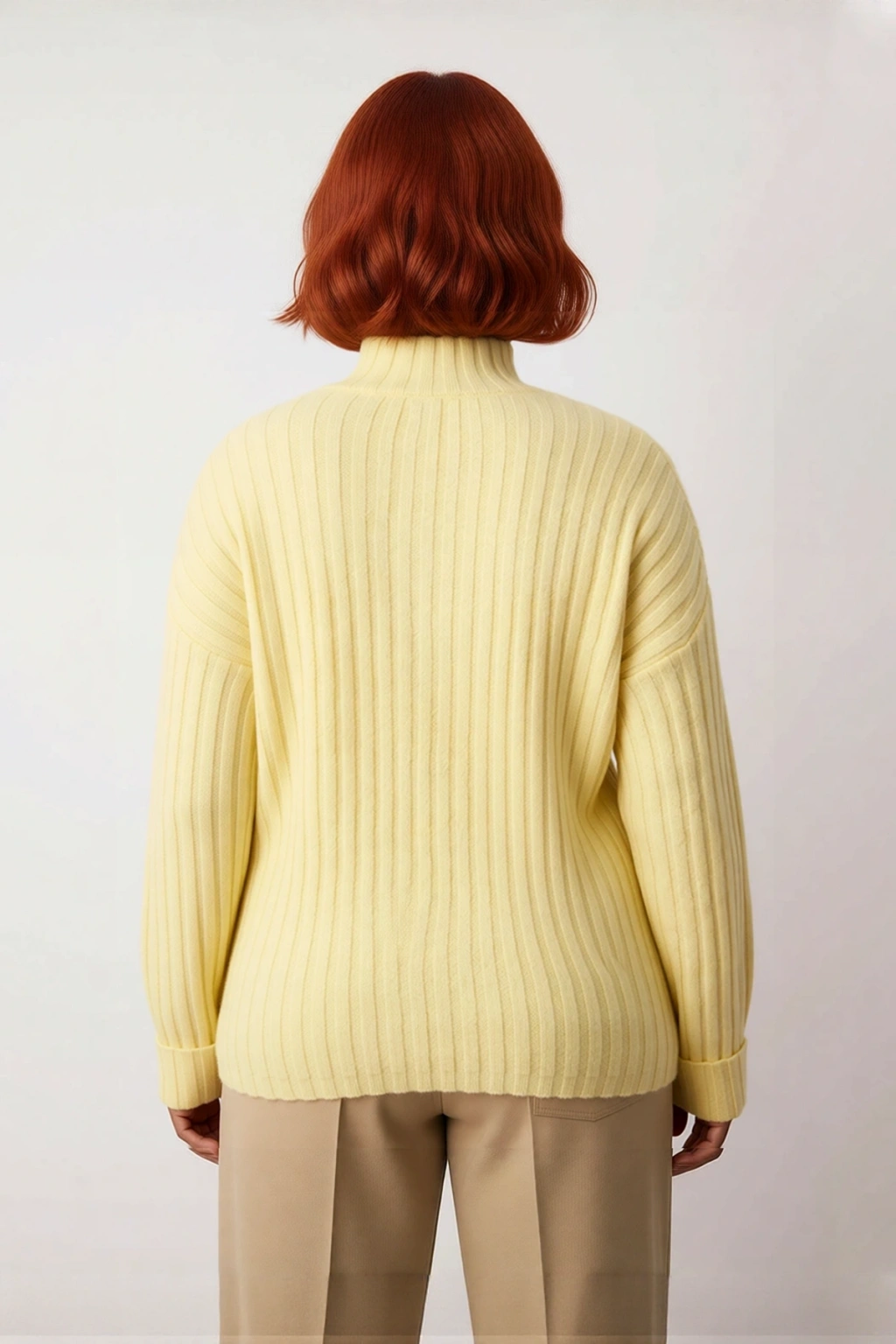 Bu rahat ve şık kazak, her vücut tipine uyum sağlayan geniş kesimiyle dikkat çeker. Jean pantolonlar, klasik kesim pantolonlar veya uzun eteklerle kombinleyerek farklı tarzlar yaratabilirsiniz. Kış sezonunun soğuk günlerinde ana parçanız olurken, bahar aylarında hafif dış giyim ürünleriyle katmanlı bir görünüm elde etmenizi sağlar. Casual ve günlük kullanımlar için idealdir.