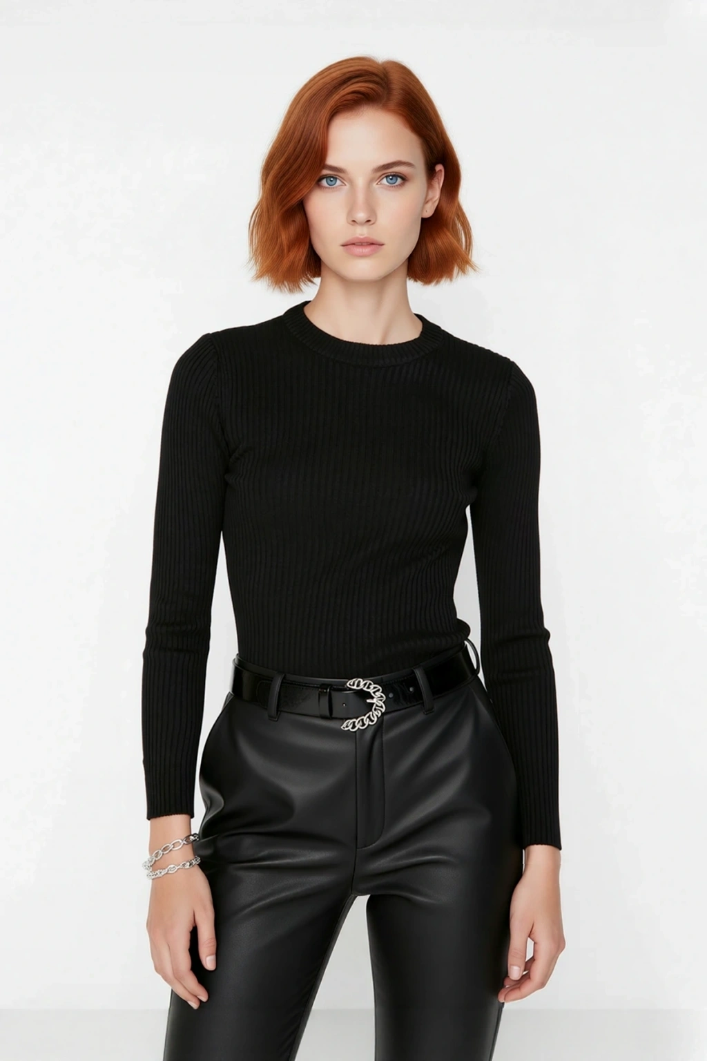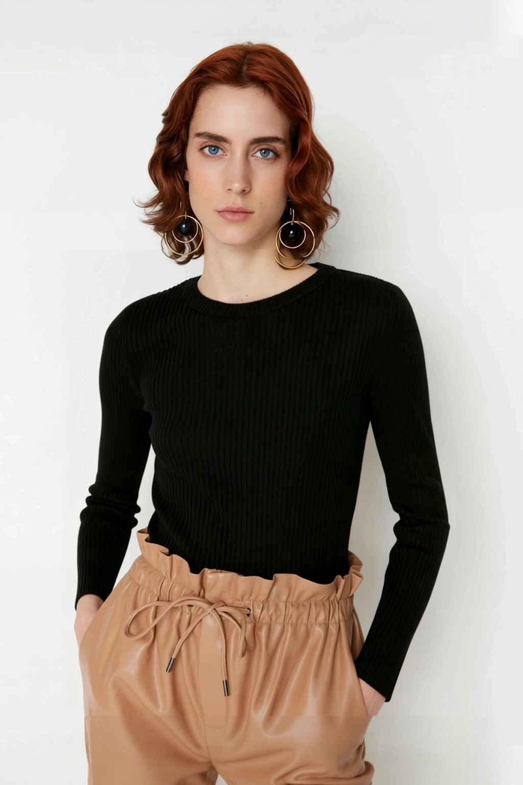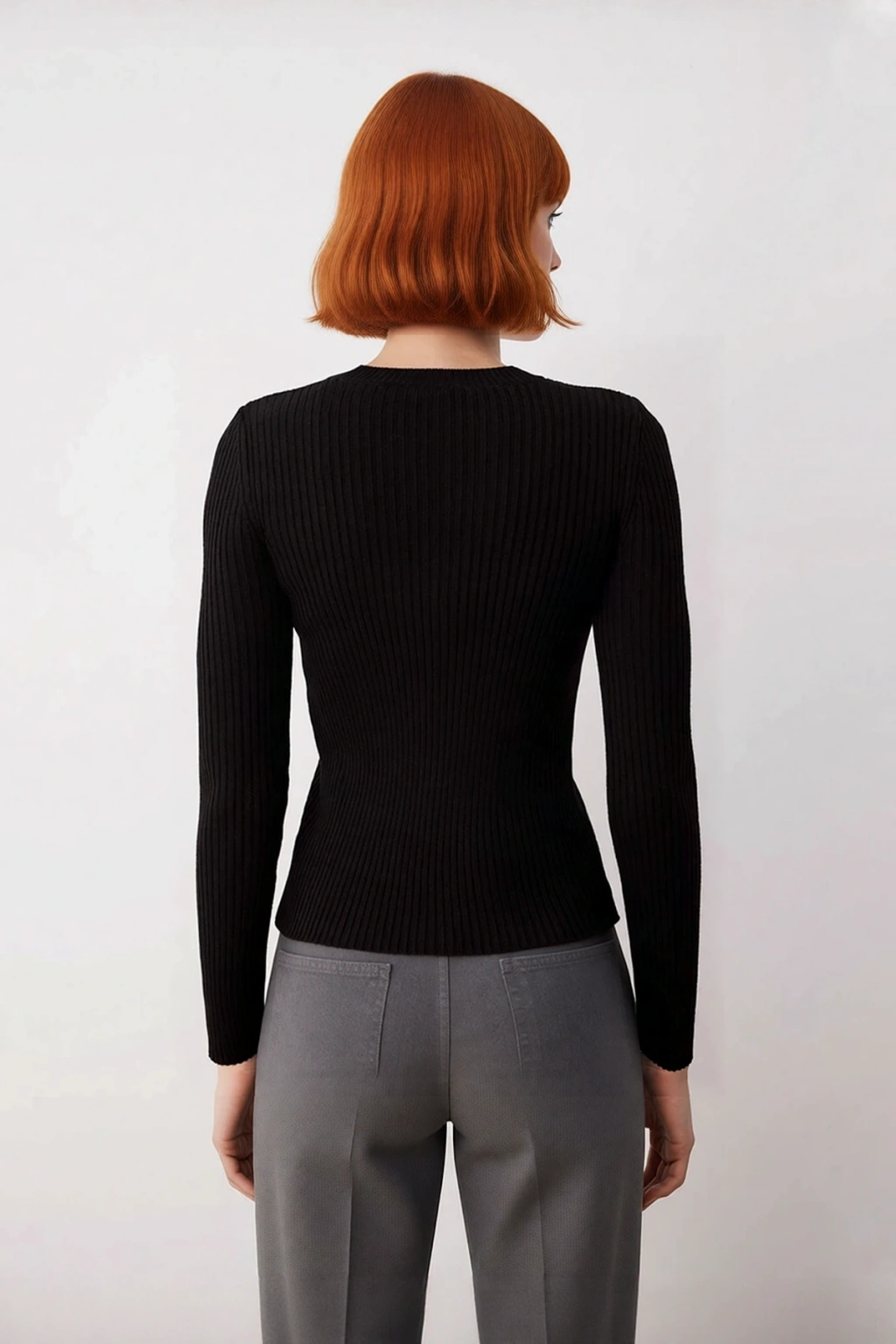 Fitted kesimi ile her bedene ve vücut tipine uyum sağlayan bu triko kazak, kalem eteklerden yüksek bel pantolonlara kadar çeşitli alt giyim ürünleriyle mükemmel uyum sağlar. Casual/Günlük yaşamda, ofiste veya hafta sonu gezilerinde rahatlıkla kullanılabilir. Kış ve sonbaharın soğuk günlerinde dış giyiminizle kombinleyerek sıcak kalırken, ilkbahar akşamlarında da tek başına şık bir tercih olacaktır. Bu parça, gardırobunuzun çok yönlü ve vazgeçilmez bir tamamlayıcısıdır.