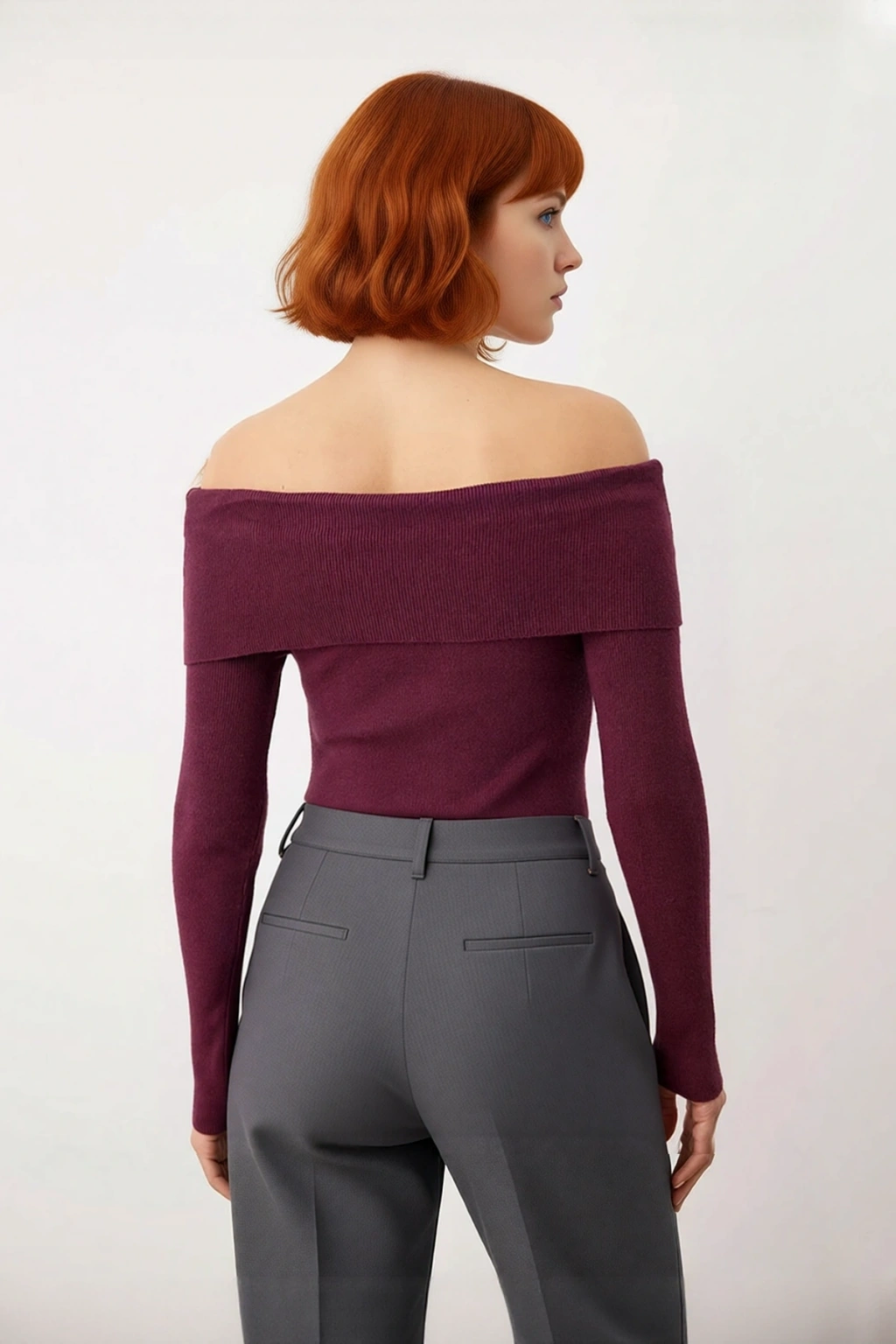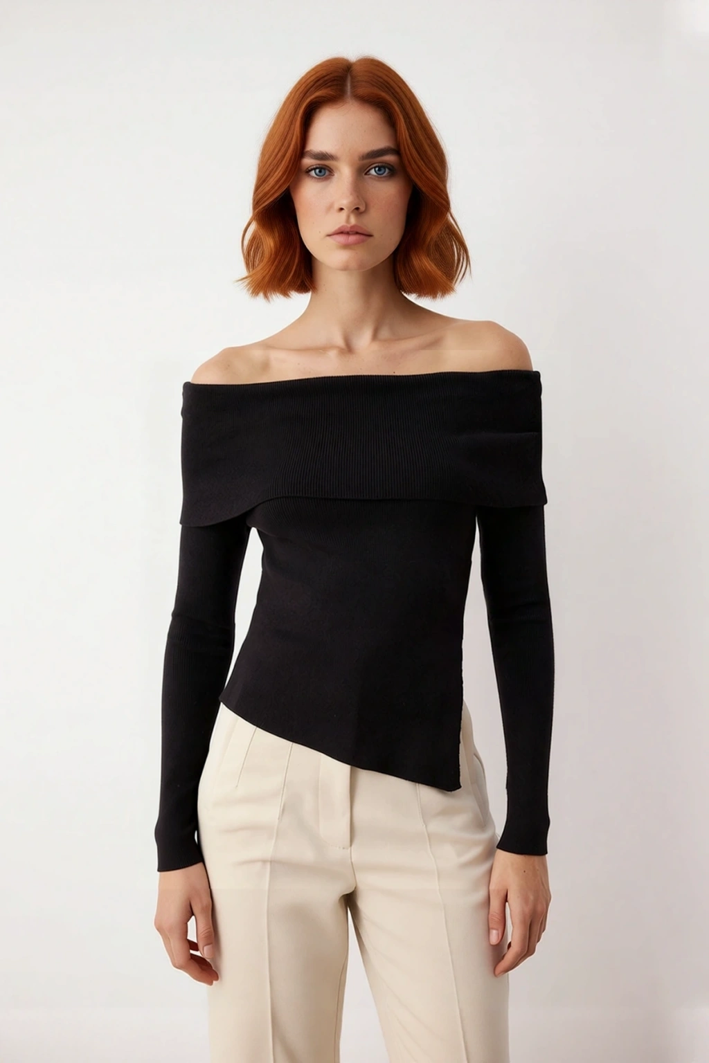Zarif fitted kesimi ile her vücut tipine uyum sağlayan bu Carmen yaka triko kazak, hem günlük kombinlerinizde hem de özel davetlerde vazgeçilmeziniz olacak. Kumaş pantolonlar, etekler veya jeanlerle rahatlıkla kombinlenebilir. Özellikle ilkbahar ve sonbahar mevsimlerinde serin akşamlar ve hafif rüzgarlı günler için idealdir. Şık bir görünüm elde etmek isteyen kadınlar için mükemmel bir seçimdir.