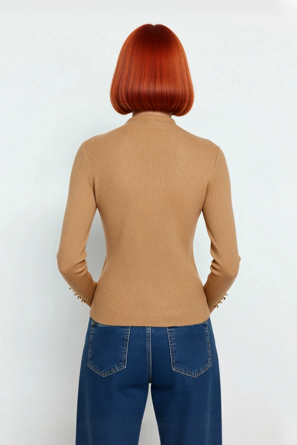 Dik yaka tasarımı, boynu nazikçe sararak hem soğuktan koruma hem de sofistike bir dokunuş ekler. Standart uzun kol yapısı, kol ucu düğme detaylarıyla zenginleştirilmiş olup, hareket özgürlüğünü kısıtlamadan estetik bir vurgu sunar. Triko kumaş tipi, nefes alabilen yapısıyla cildinizin gün boyu rahat etmesini sağlarken, esnek dokusu her hareketinize uyum sağlayarak üstün bir konfor sunar. Regular boy kesimi, jean pantolonlardan kumaş pantolonlara veya eteklere kadar geniş bir yelpazede mükemmel bir uyum yakalar. Dayanıklı %100 akrilik materyali sayesinde uzun ömürlü kullanım garantisi verir ve T41 yıkama talimatına uygun olarak makinede kolayca temizlenebilir.