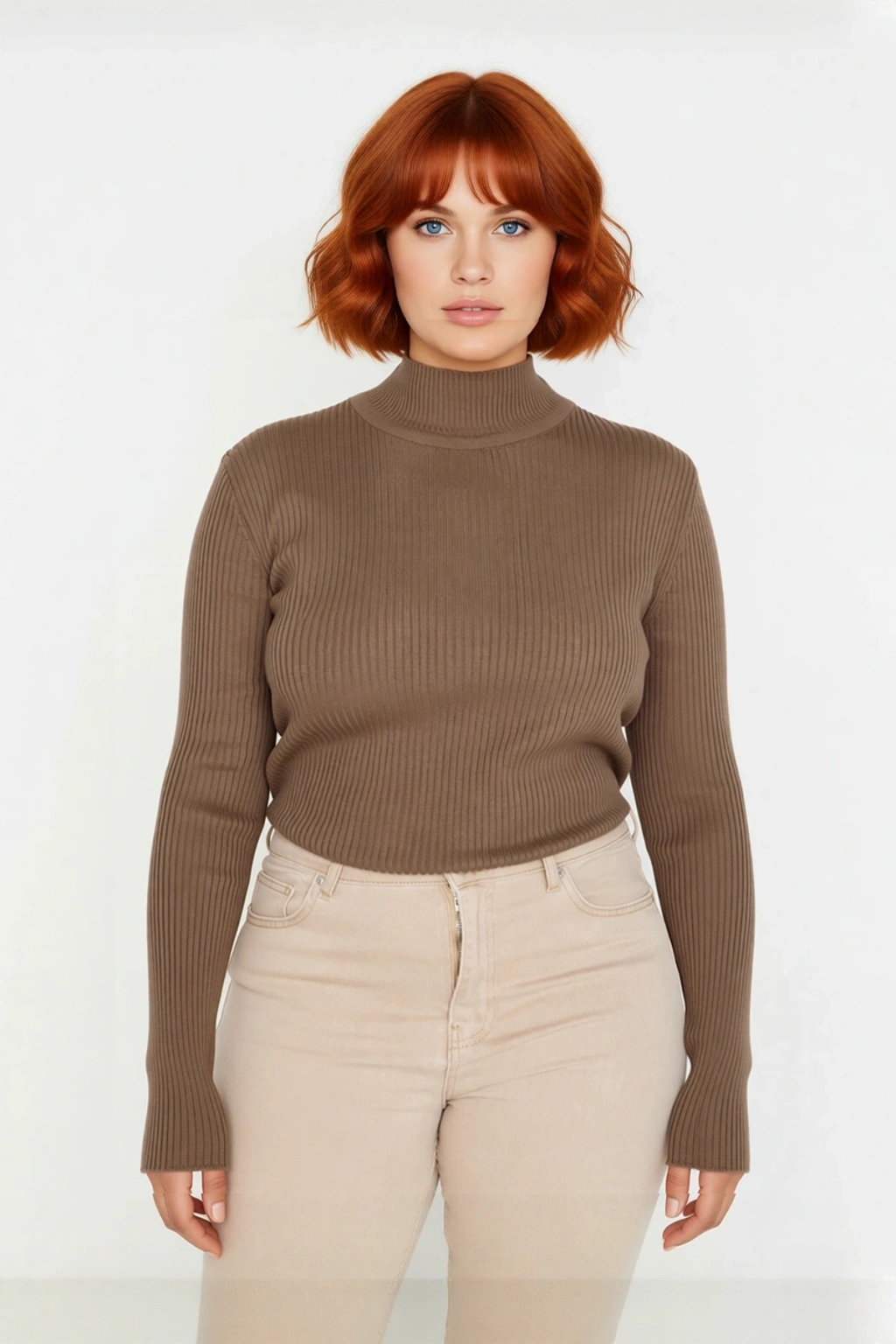 Ürün Özellikleri: Fitted kalıp, akrilik materyal, düz desen, dik yaka, standart kol, triko kumaş, bordo renk, baskısız tasarım, fitilli dokuma, ince kalınlık.