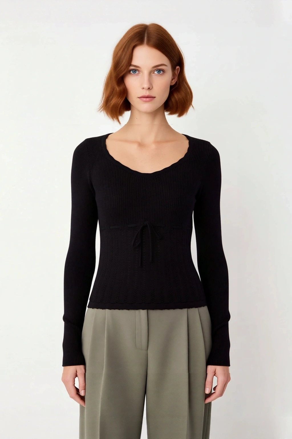 Havuz yaka tasarımı, boyun ve omuz çizgisini nazikçe vurgulayarak sofistike bir duruş sergiler. Standart uzun kol tipi, hareket özgürlüğünden ödün vermeden sıcaklık sunar. Triko kumaşın tek plaka dokuma özelliği, ince yapısıyla nefes alabilirliği artırırken, İlkbahar ve Sonbahar aylarında ideal bir katmanlama parçası olmasını sağlar. Ürünün bel kısmındaki farklı dokuma deseni ve bağlama detayı, tasarıma özgünlük katarken, genel düz ve zarif görünümü tamamlar. Kaliteli materyal bileşimi sayesinde uzun ömürlü kullanım sunar ve T41 yıkama talimatına uygunluğu ile bakımı oldukça kolaydır. Casual/günlük kullanım için mükemmeldir.