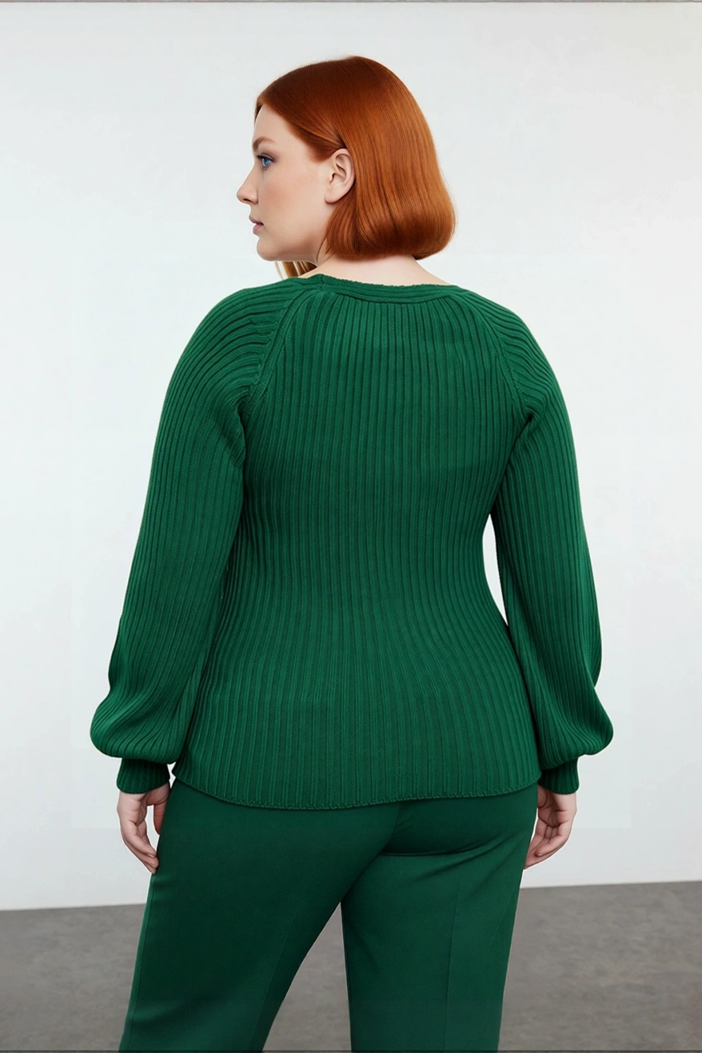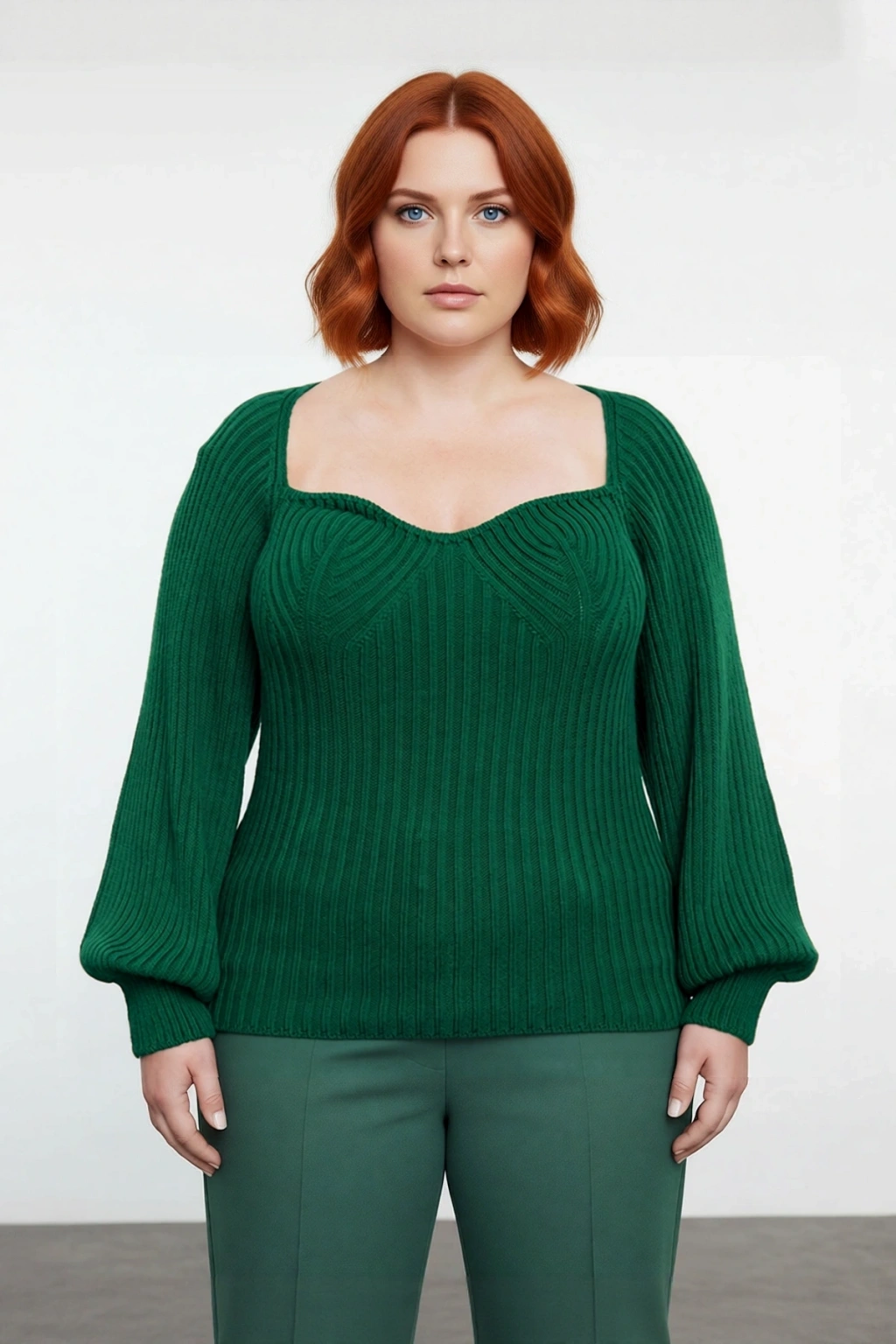 Ürün Özellikleri: Fitted kalıp, akrilik materyal, düz desen, kalp yaka, reglan kol, triko kumaş, yeşil renk, baskısız tasarım, fitilli dokuma, uzun kol, orta kalınlık, regular boy.