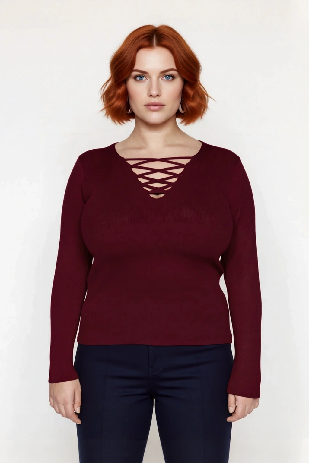 Özel tasarım britli V yaka, bluzunuza dinamik ve dikkat çekici bir hava katarken, standart kol tipi gün içinde rahat hareket özgürlüğü sunar. İnce triko kumaş yapısı sayesinde nefes alabilir özelliktedir ve cildinize yumuşak bir dokunuş sağlar, alerjik reaksiyon riskini azaltır. Bodycone silueti vücut hatlarını zarifçe sararak feminen bir duruş sergiler. Tek plaka dokuma tekniği, ürünün formunu uzun süre korumasına yardımcı olurken, yüksek kalitesiyle fark yaratır. Makinede yıkanabilir özelliği ile bakımı oldukça kolaydır, böylece değerli zamanınız size kalır.