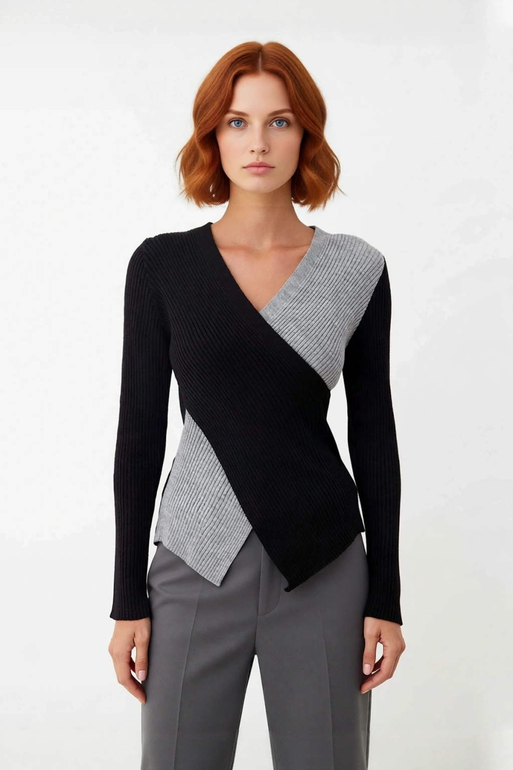 Kruvaze yaka tasarımı, modern ve çekici bir görünüm sağlarken, dekolteyi zarif bir şekilde vurgular ve feminen bir dokunuş katar. Standart uzun kolları, gün boyu rahat hareket imkanı sunarak aktif yaşam tarzınıza uyum sağlar. İnce triko kumaş yapısı, nefes alabilen özelliğiyle cildinizin hava almasını sağlarken, esnek dokusu sayesinde vücuda tam oturur ve hareket özgürlüğü sunar. Dayanıklı akrilik lifleri sayesinde uzun ömürlü bir kullanım vaat eden bu kazak, yıkama talimatlarına uygun şekilde bakıldığında formunu ve rengini uzun süre korur. Kolay bakımı ile pratik bir kullanım sunarak yoğun tempolu günlerinizde bile size zaman kazandırır.
