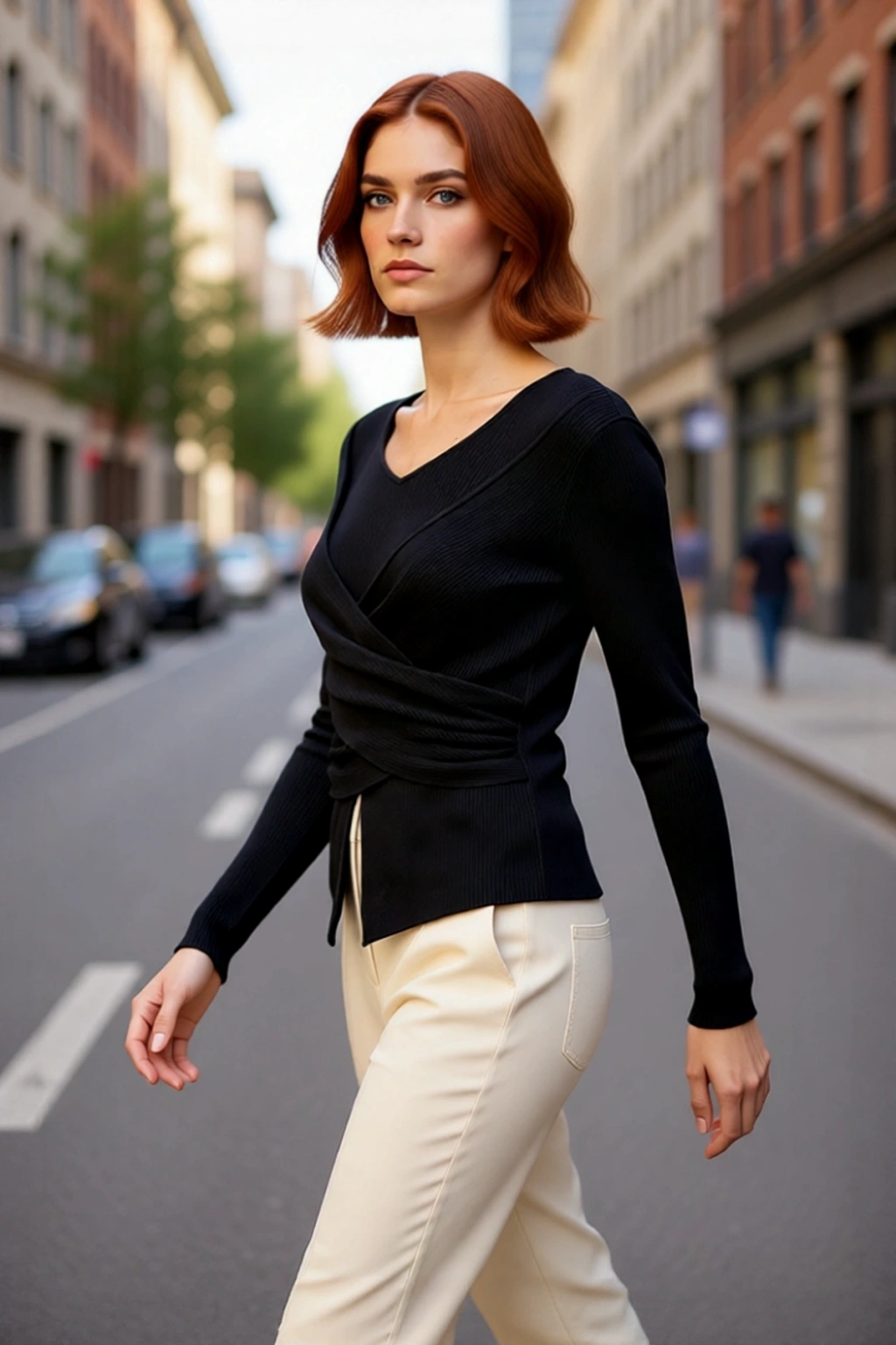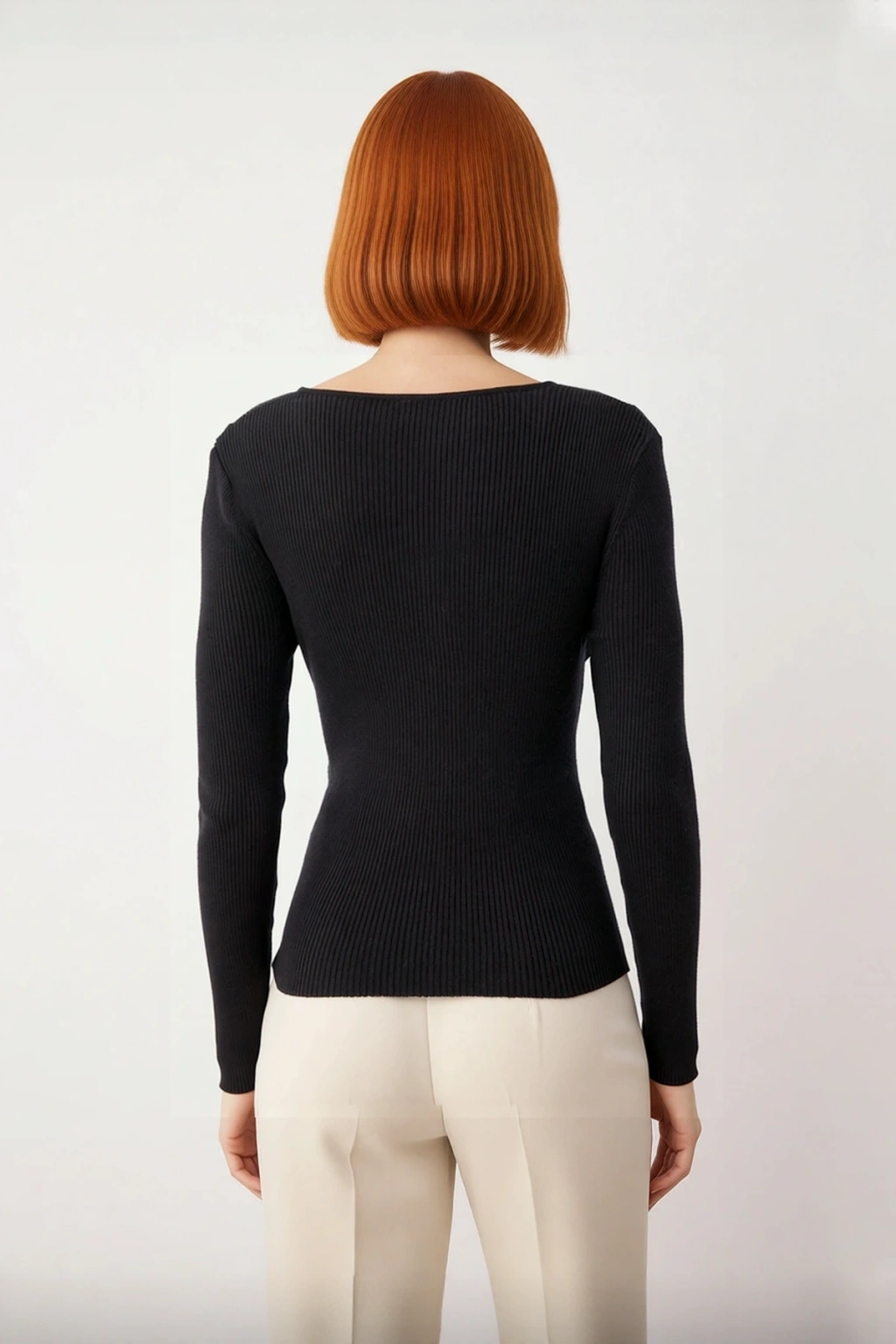 Bu fitted kesim kazak, her vücut tipine uyum sağlayarak zarif bir duruş sergiler. Pantolon, etek veya şortlarla kolayca kombinlenebilir. İlkbahar ve sonbahar aylarında günlük casual kombinlerinizde veya özel buluşmalarda rahatlıkla tercih edebilirsiniz. Şehrin dinamik temposuna ayak uydururken tarzınızdan ödün vermek istemeyenler için idealdir.