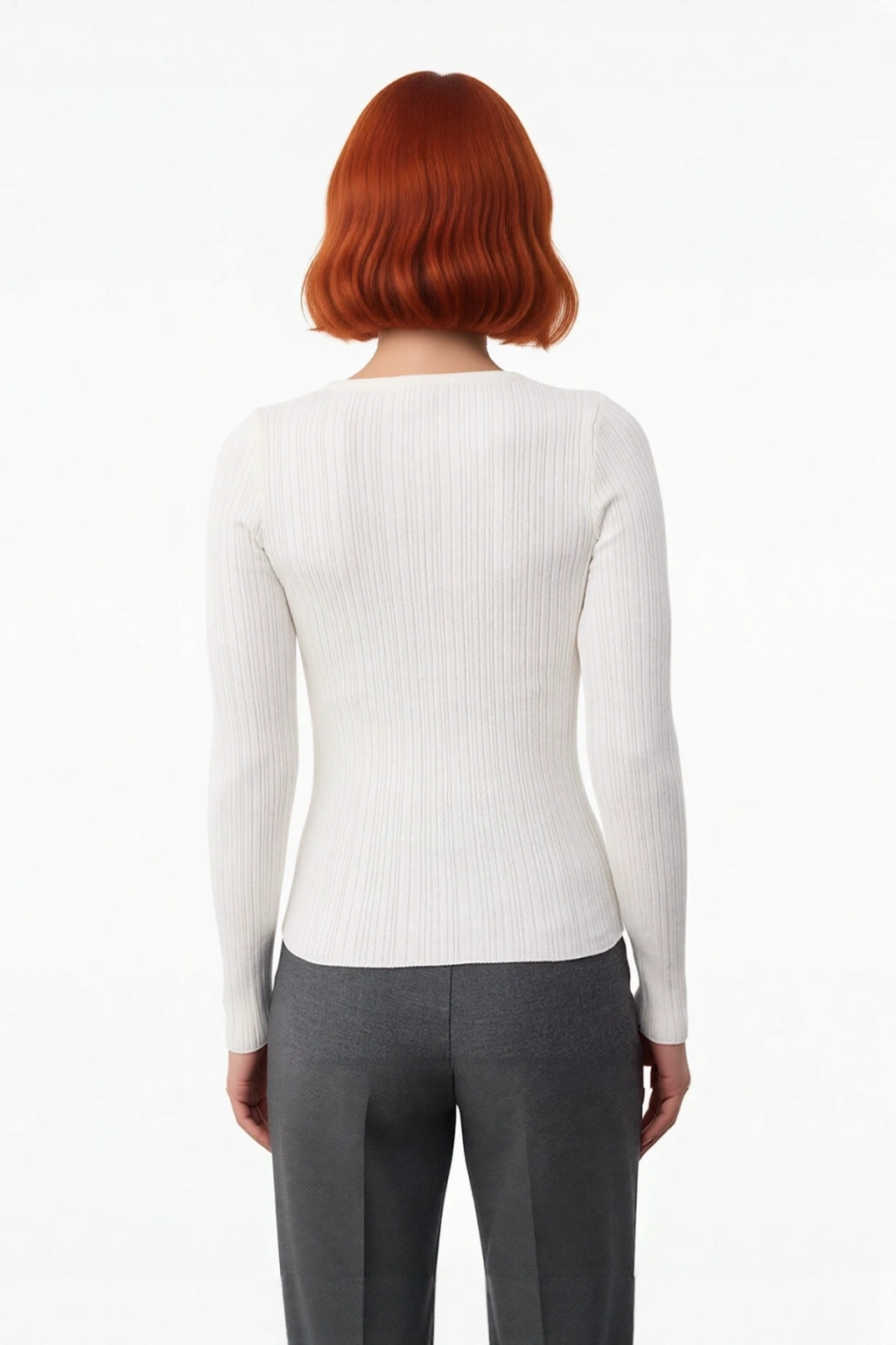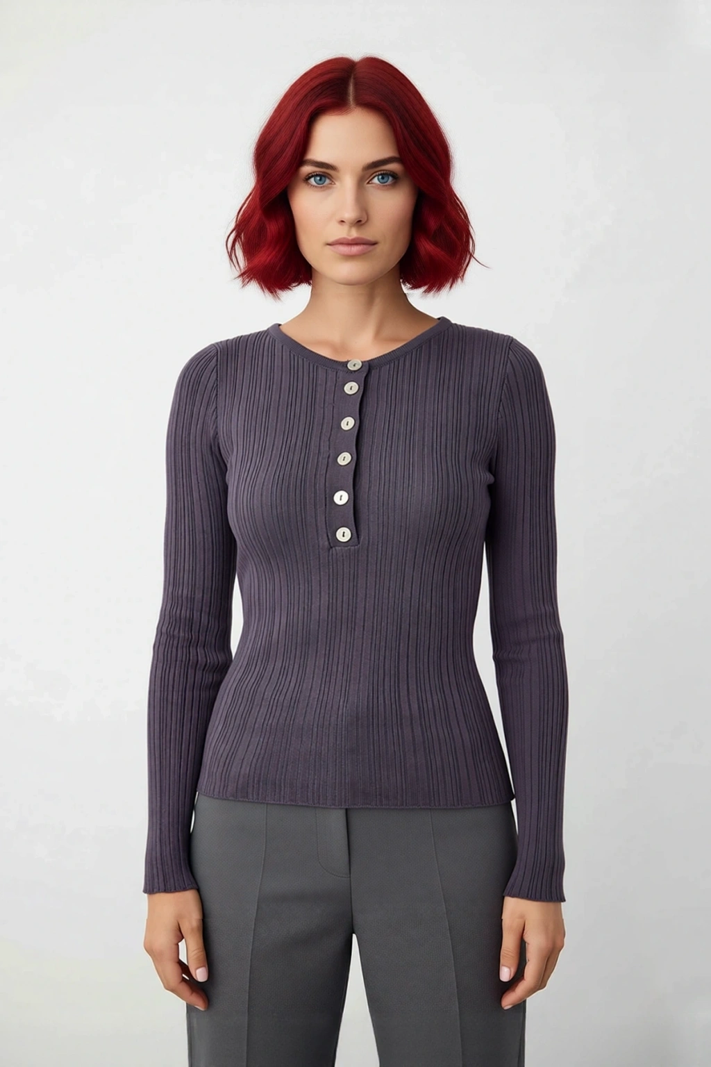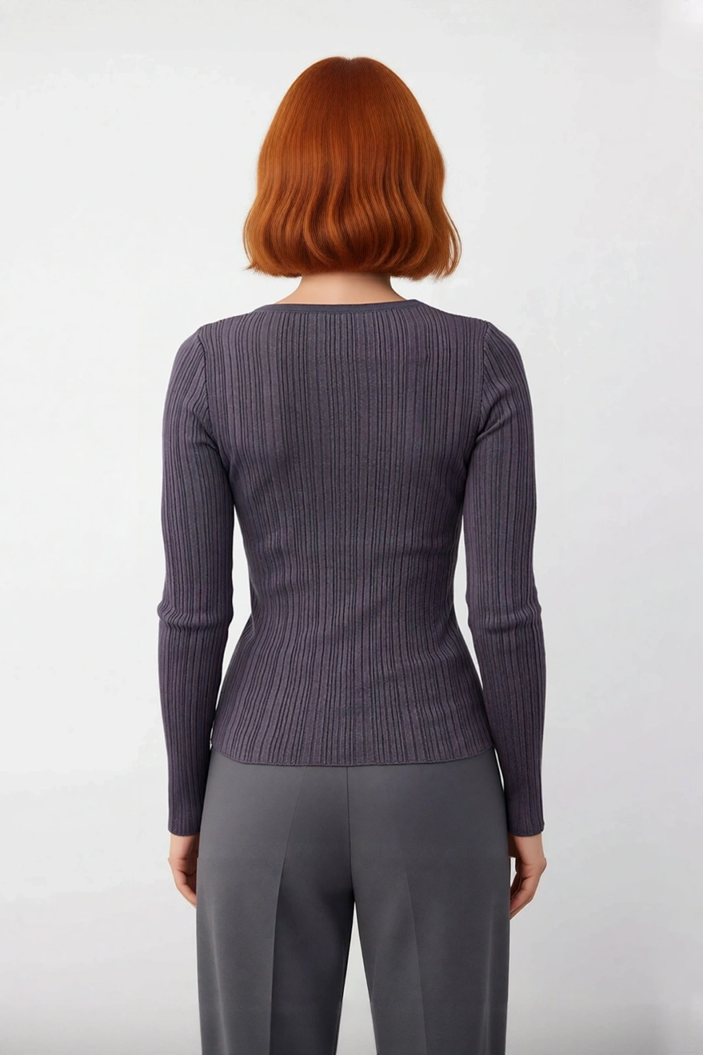 Ürün Özellikleri: Fitted kalıp, viskoz materyal, fitilli desen, bisiklet yaka, standart kol, triko kumaş, gri renk.