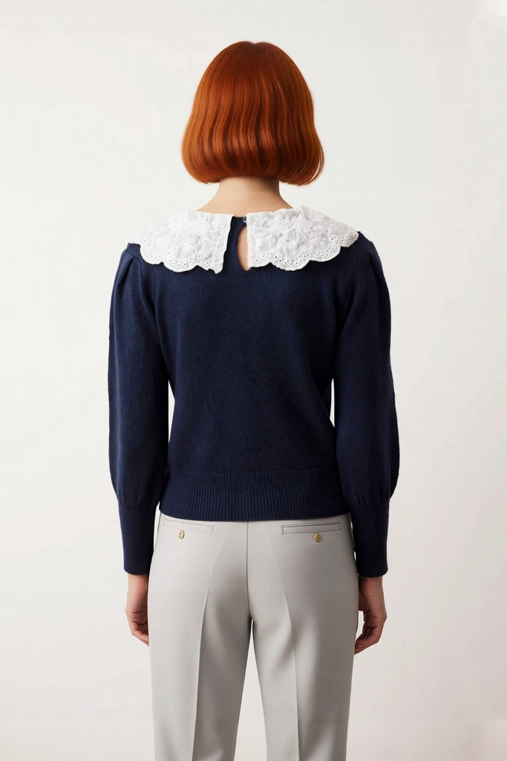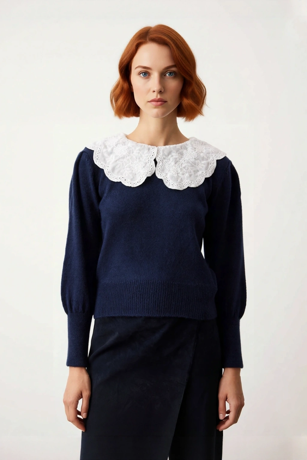 Gömlek yaka tasarımı, kazağa klasik ve sofistike bir dokunuş katarken, görseldeki dantelli ve işlemeli garnisi sayesinde benzersiz bir detay sunar. Standart kol tipi ve uzun kol boyu, hareket özgürlüğünü kısıtlamadan şık bir duruş sergiler. Orta kalınlıktaki triko kumaş, nefes alabilir yapısıyla cildinizin hava almasını sağlarken, tek plaka dokuma tekniği dayanıklılığı artırır. Bu özellikler sayesinde kazak, uzun süreli kullanımlarda bile formunu korur ve yıpranmaya karşı direnç gösterir. Makinede yıkanabilir olması (T41 yıkama talimatı), ürünün bakımını kolaylaştırarak pratik bir kullanım sunar. Günlük kullanım için ideal olan bu tasarım, konforu ve şıklığı bir arada arayan kadınlar için özel olarak üretilmiştir.