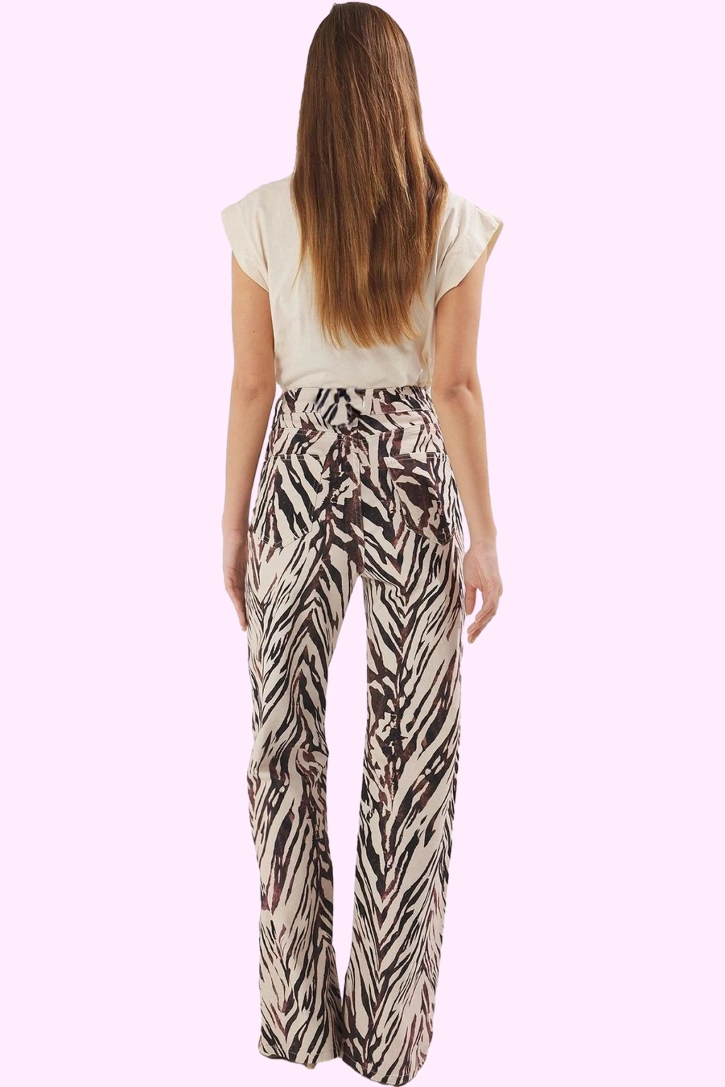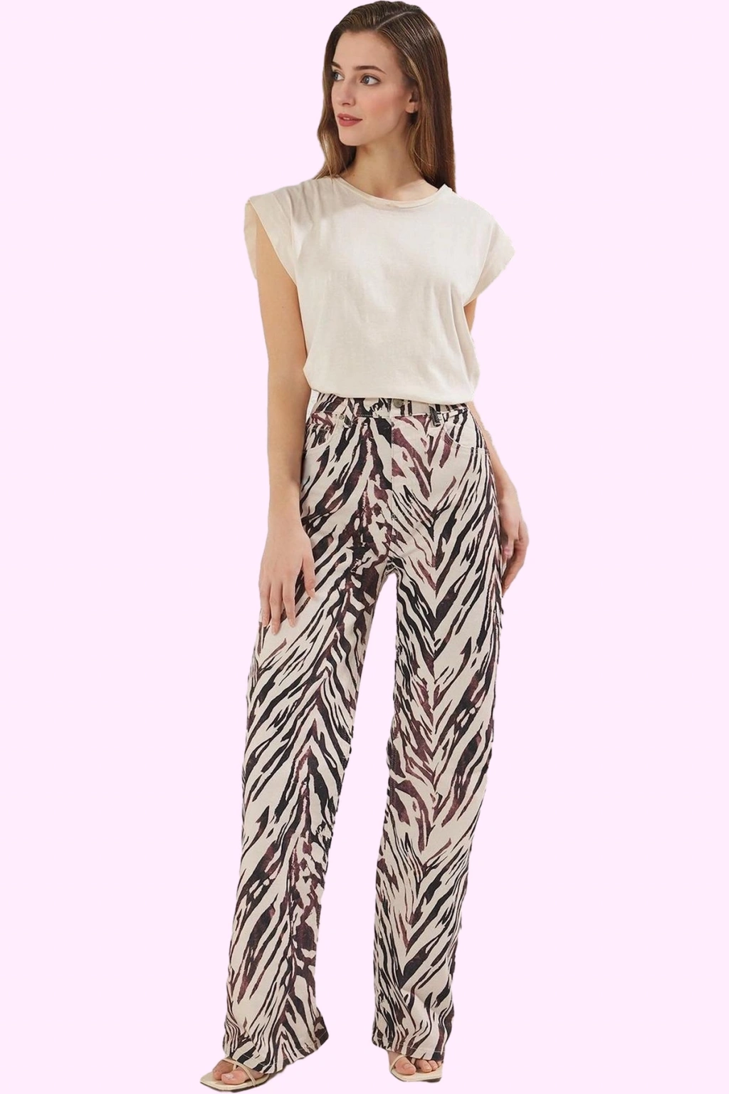 Şıklığı ve rahatlığı bir araya getiren bu kadın jean pantolonu keşfedin! Yüksek bel tasarımı ve geniş paçası ile benzersiz bir stil oluştururken, %98 pamuk ve %2 elastan karışımı yumuşak ve nefes alabilir kumaşıyla gün boyu konfor sunuyor. Çok renkli animal deseni, kıyafetlerinize modern ve dikkat çekici bir dokunuş katıyor. İster günlük kombinlerinizde, ister özel davetlerde, bu pantolon size her zaman şık bir görünüm sağlayacaktır.