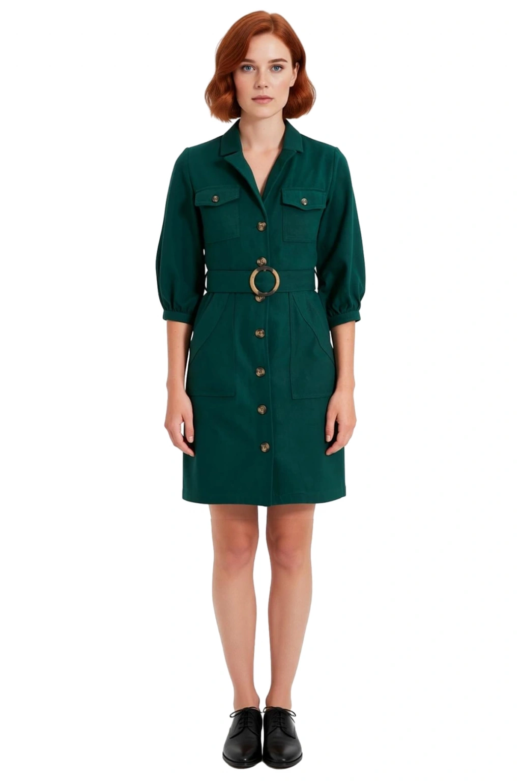 Ürün Özellikleri: Ceket elbise kalıp, %100 pamuk gabardin materyal, düz desen, gömlek yaka, balon truvakar kol, dokuma kumaş, haki renk.