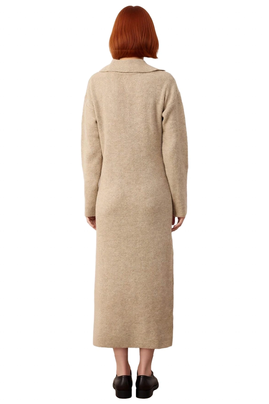 Ürün Özellikleri: A-line kalıp, 78% akrilik 22% polyester materyal, düz desen, gömlek yaka, standart kol, triko kumaş, kahverengi renk.