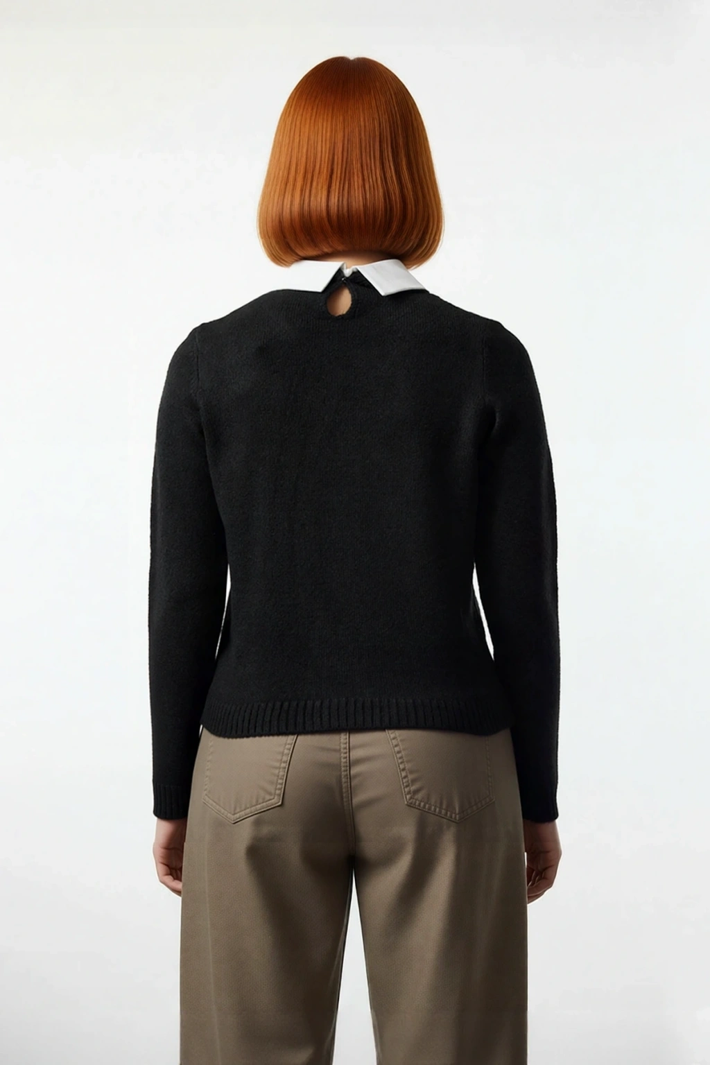 Gömlek yaka görünümlü tasarımı, kazağa sofistike bir katman ekleyerek iş ve günlük yaşam arasında mükemmel bir köprü kurar. Standart kol yapısı, gün boyu süren aktivitelerinizde maksimum hareket özgürlüğü ve benzersiz bir konfor sağlar. Orta kalınlıktaki triko kumaş, vücut ısınızı dengede tutarken, tek plaka dokuma kalitesiyle uzun yıllar boyunca formunu ve ilk günkü estetiğini korur. Ürünün kolay bakımı, pratik kullanım avantajı sunar; makinede yıkanabilir özelliği sayesinde temizliği son derece zahmetsizdir.