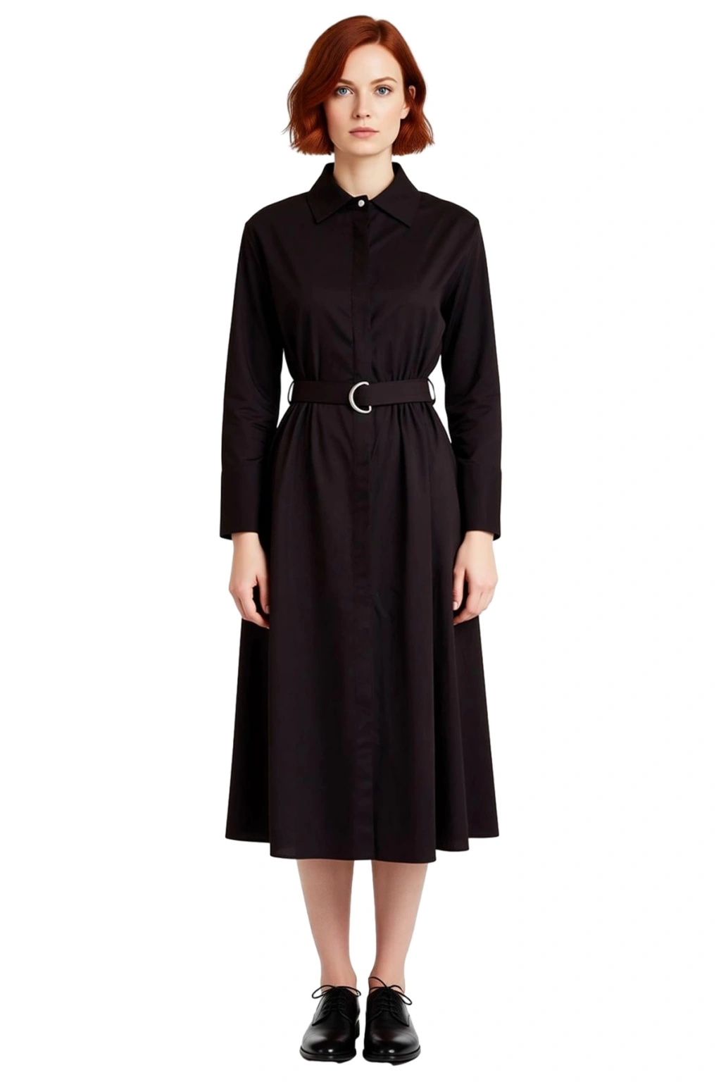 Gömlek yaka tasarımı klasik bir dokunuş katarken, yarasa kol tipi ve uzun kol boyu modern bir siluet çizer. Kuşaklı yapısı sayesinde belinizi vurgulayarak feminen bir görünüm elde etmenizi sağlar. Astarsız oluşu hafif ve nefes alabilir bir kullanım sunarken, dokuma poplin kumaşın kalitesi dayanıklılığı garanti eder. T80 yıkama talimatı ile bakımı oldukça kolaydır, böylece uzun süre ilk günkü gibi kalır. Her detayı özenle düşünülmüş bu elbise, kalitesiyle öne çıkar.