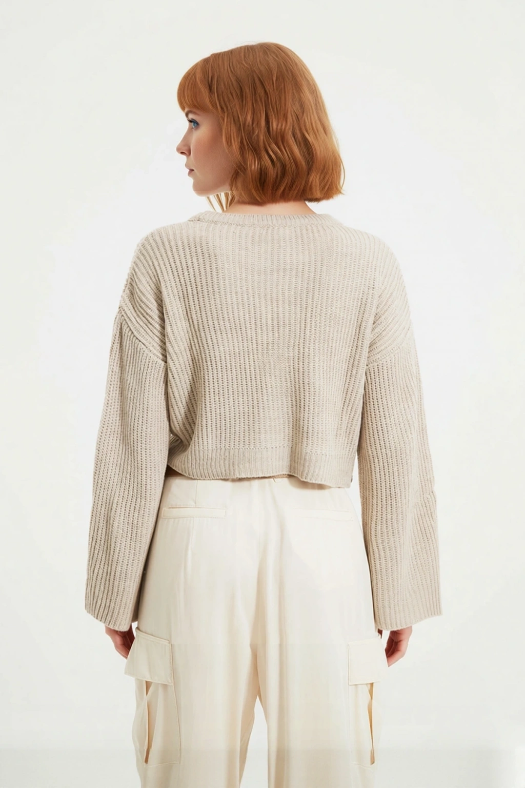 Oversize kesimi ile her vücut tipine uyum sağlayan bu crop kazak, günlük stilinizi kolayca yükseltir. Yüksek belli jean'ler, kumaş pantolonlar veya pilili eteklerle kombinleyerek farklı görünümler yaratabilirsiniz. Kış aylarında katmanlı giyim için idealdir; sonbahar ve ilkbaharda ise tek başına şık bir parça olarak tercih edilebilir. Casual ortamlar ve günlük aktiviteler için mükemmel bir seçenektir.