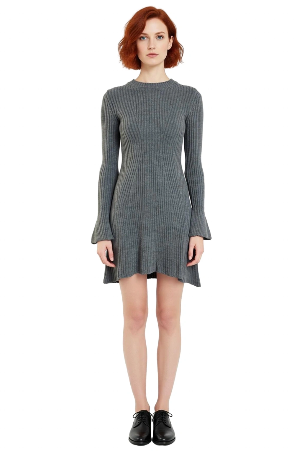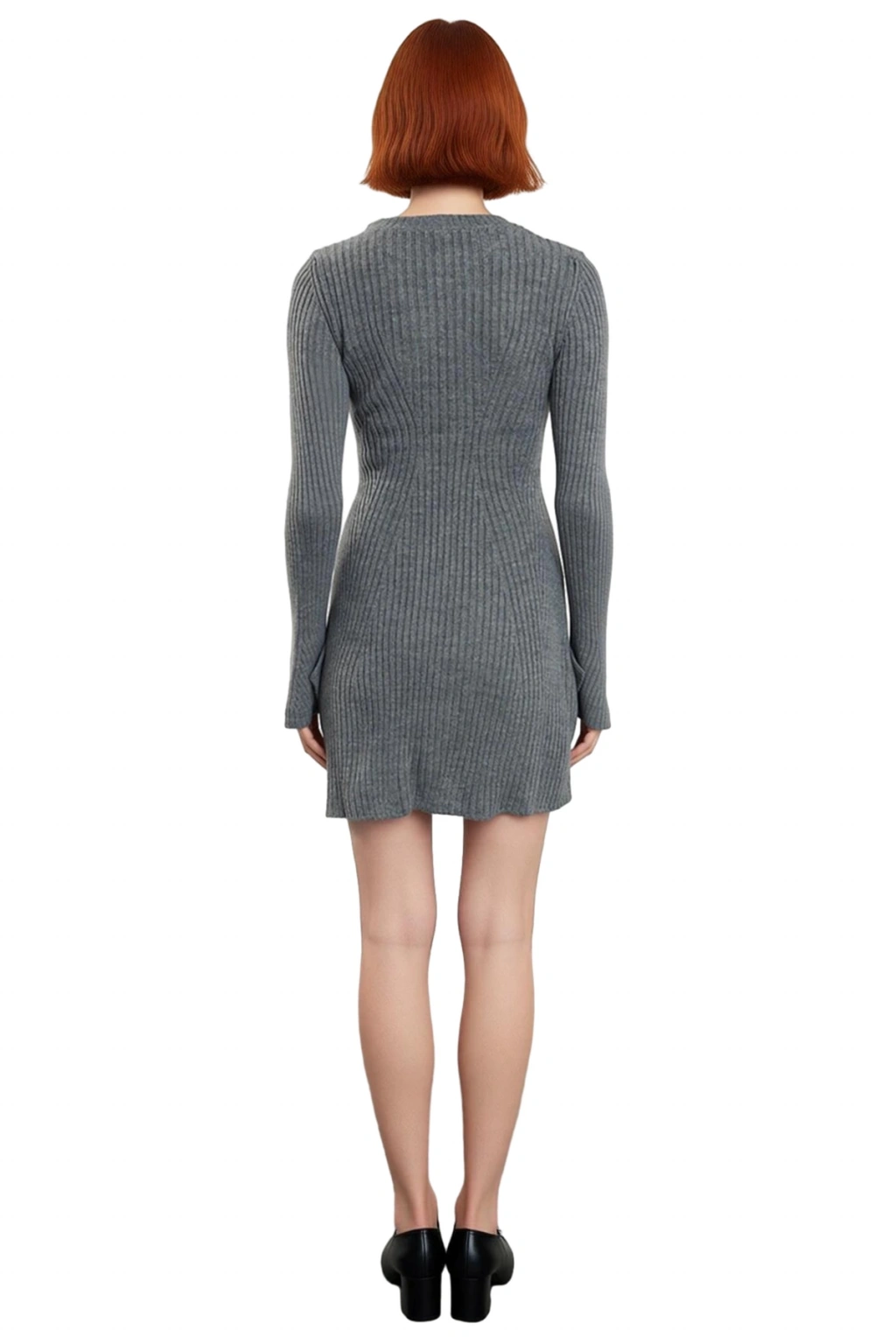 Ürün Özellikleri: A-line kalıp, akrilik materyal, düz desen, bisiklet yaka, standart kol, triko kumaş, gri renk.