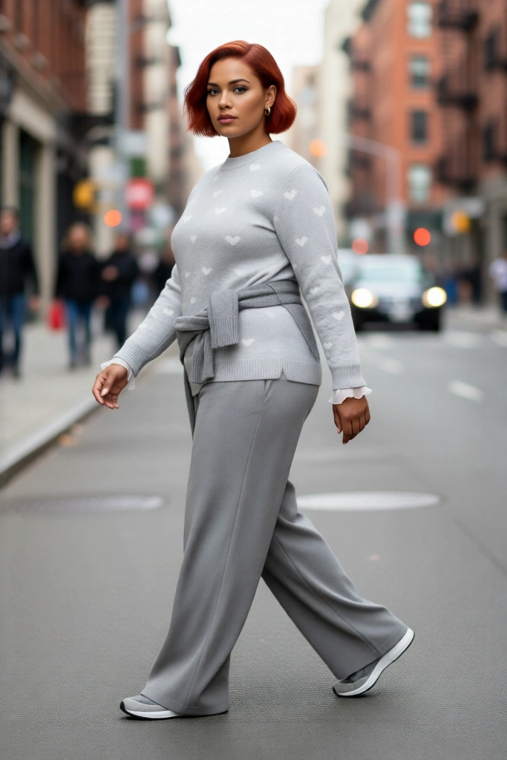 Gri kalp desenli triko kazak, kış aylarının soğuklarına karşı hem sıcaklık hem de stil sunan eşsiz bir parçadır. Regular kalıbı sayesinde her vücut tipine rahatça uyum sağlar, gün boyu konforlu bir kullanım vadeder. Akrilik ve polyester materyal karışımı, yumuşak dokusuyla cildinize narin bir his verirken, kalp deseni sevimli ve enerjik bir hava katıyor. Bu kazak, casual ve günlük kombinleriniz için mükemmel bir başlangıç noktasıdır. Gri rengi ise kolayca diğer parçalarla uyum sağlayarak gardırobunuzun joker elemanı olur.
