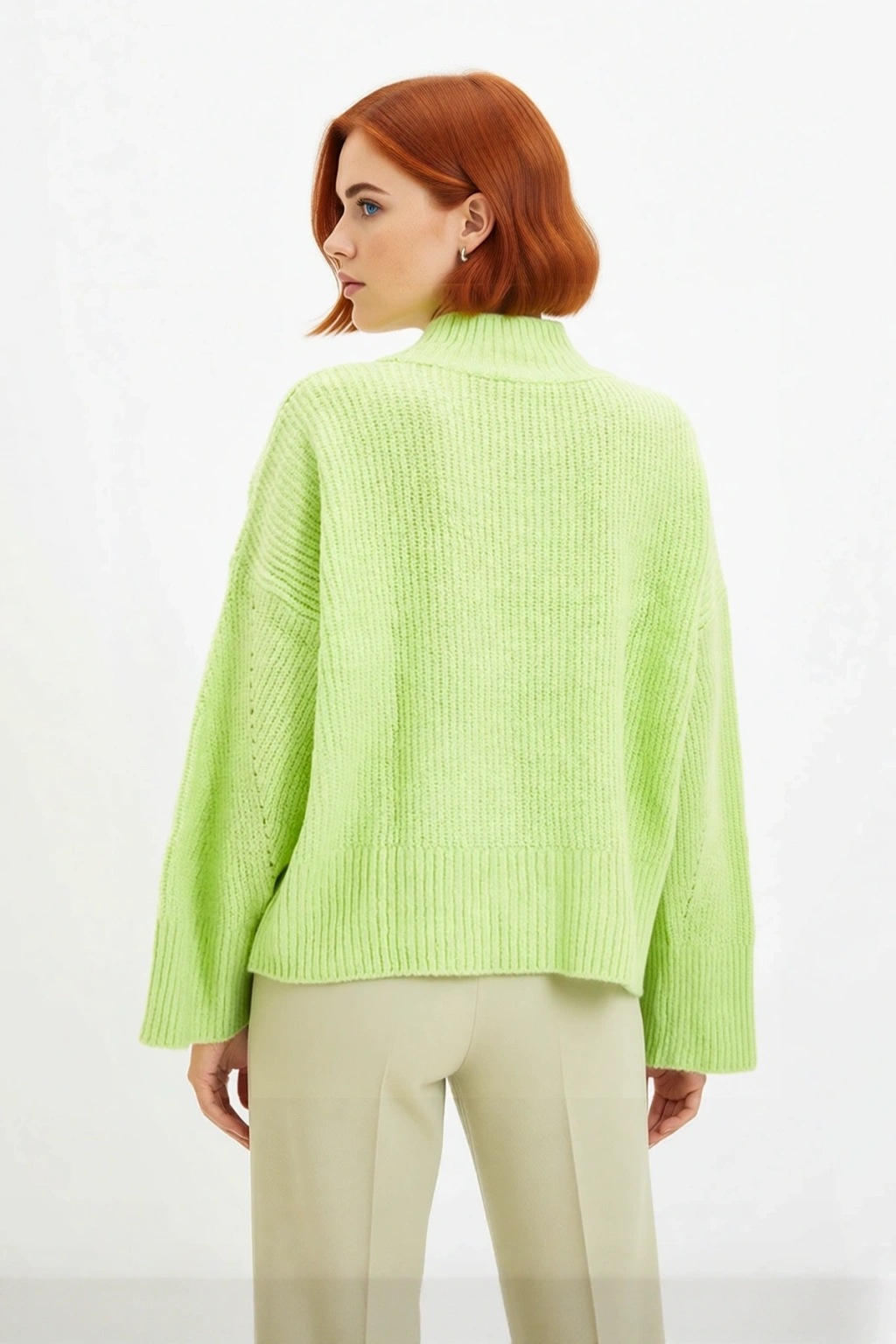 Dik yaka tasarımı soğuk havalarda boynunuzu nazikçe korurken, reglan kol kesimi omuzlarda rahat ve spor bir görünüm sağlar, hareket özgürlüğünü artırır. Selanik dokuma tekniğiyle üretilmiş triko kumaşı, estetik bir doku katmanın yanı sıra dayanıklılık ve nefes alabilirlik sunarak uzun ömürlü kullanım vadediyor. Cepsiz ve uzun kol detayları ile sade ve fonksiyonel bir yapıya sahiptir. Orta kalınlığı sayesinde kışın ideal bir sıcaklık sunar, katmanlı giyime de uygundur. T41 yıkama talimatına uygun, makinede yıkanabilir özelliği ile bakımı oldukça kolaydır, böylece pratik kullanım sağlar.