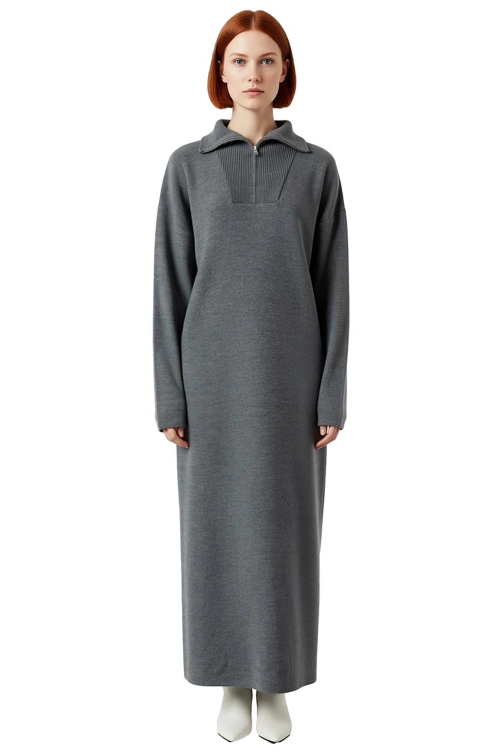 Kadın Gri Rahat Kesim Maxi Triko Elbise, kışlık günlük stilinizi tamamlamak için mükemmel bir seçim. Rahat shift kalıbı, tüm gün süren konfor ve hareket özgürlüğü sunarken, %100 akrilik materyali soğuk havalarda sizi sıcacık tutar. Düz deseni sayesinde sade ve şık bir görünüm vaat eden bu elbise, gri rengiyle kolayca kombinlenebilir ve gardırobunuzun temel parçalarından biri haline gelir. Fermuar detaylı dik yakası, elbiseye modern bir dokunuş katarken, aynı zamanda stilinizi kişiselleştirme imkanı sunar. Bu triko elbise, zahmetsiz şıklığı arayan kadınlar için ideal.
