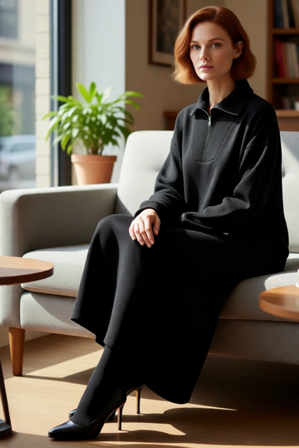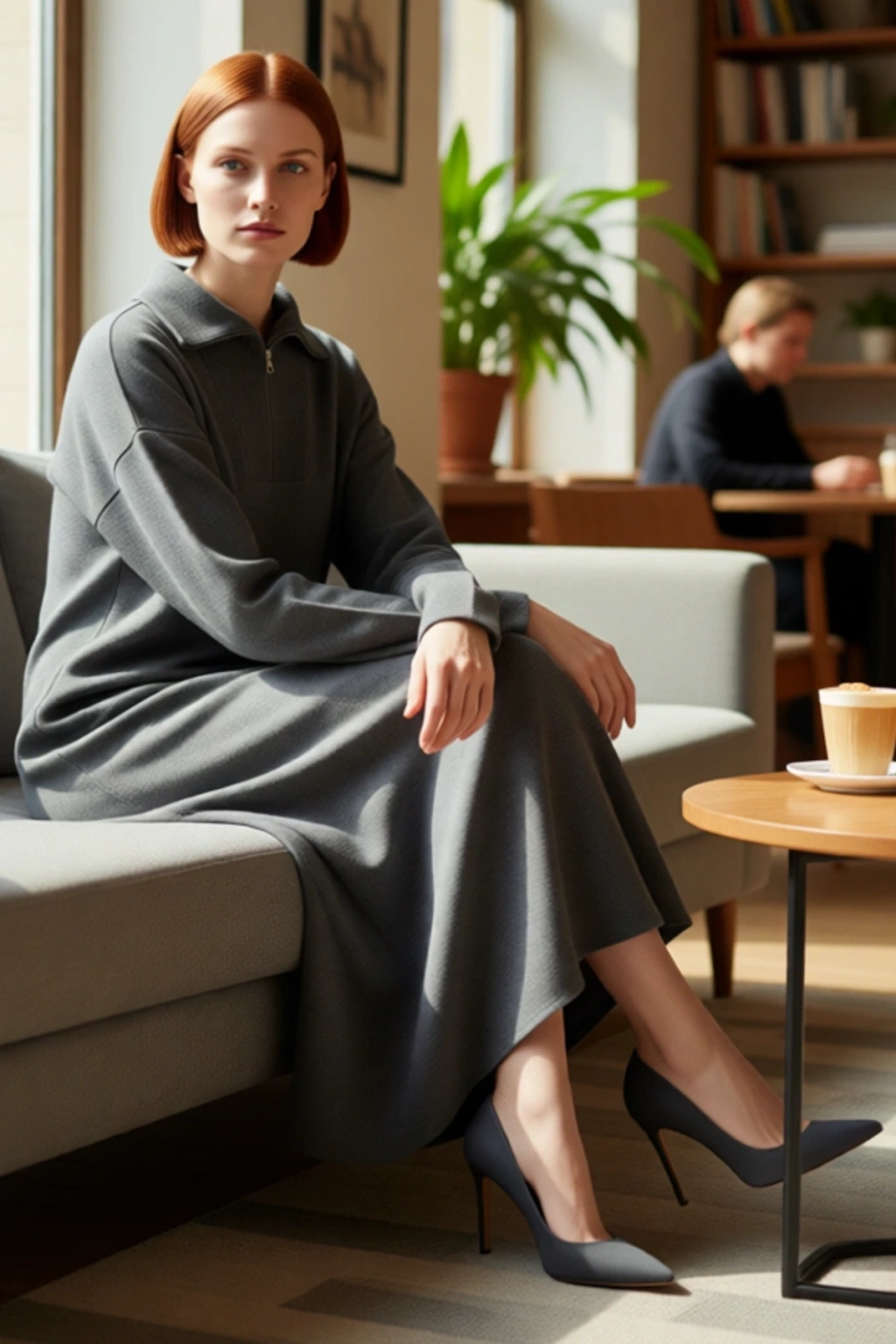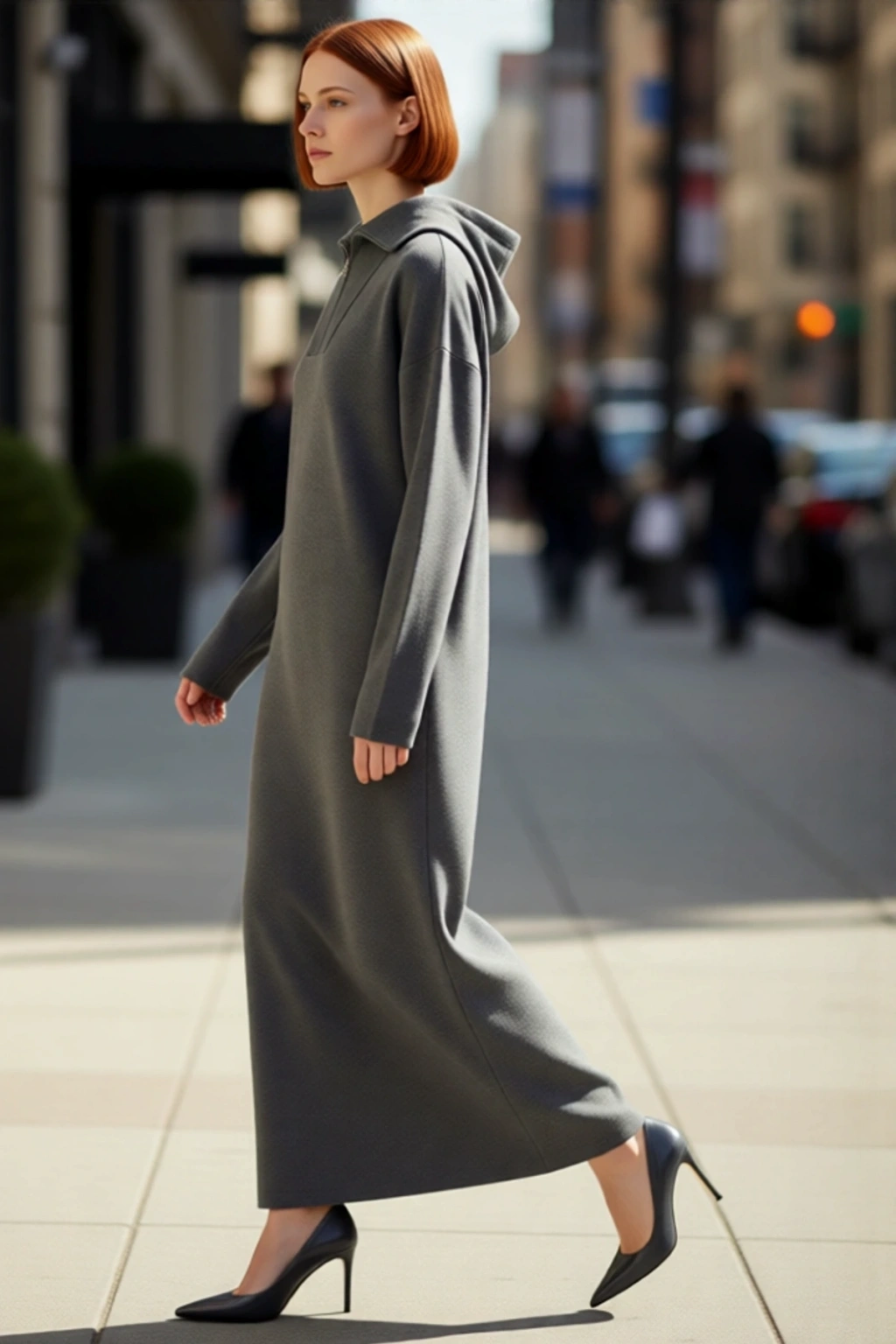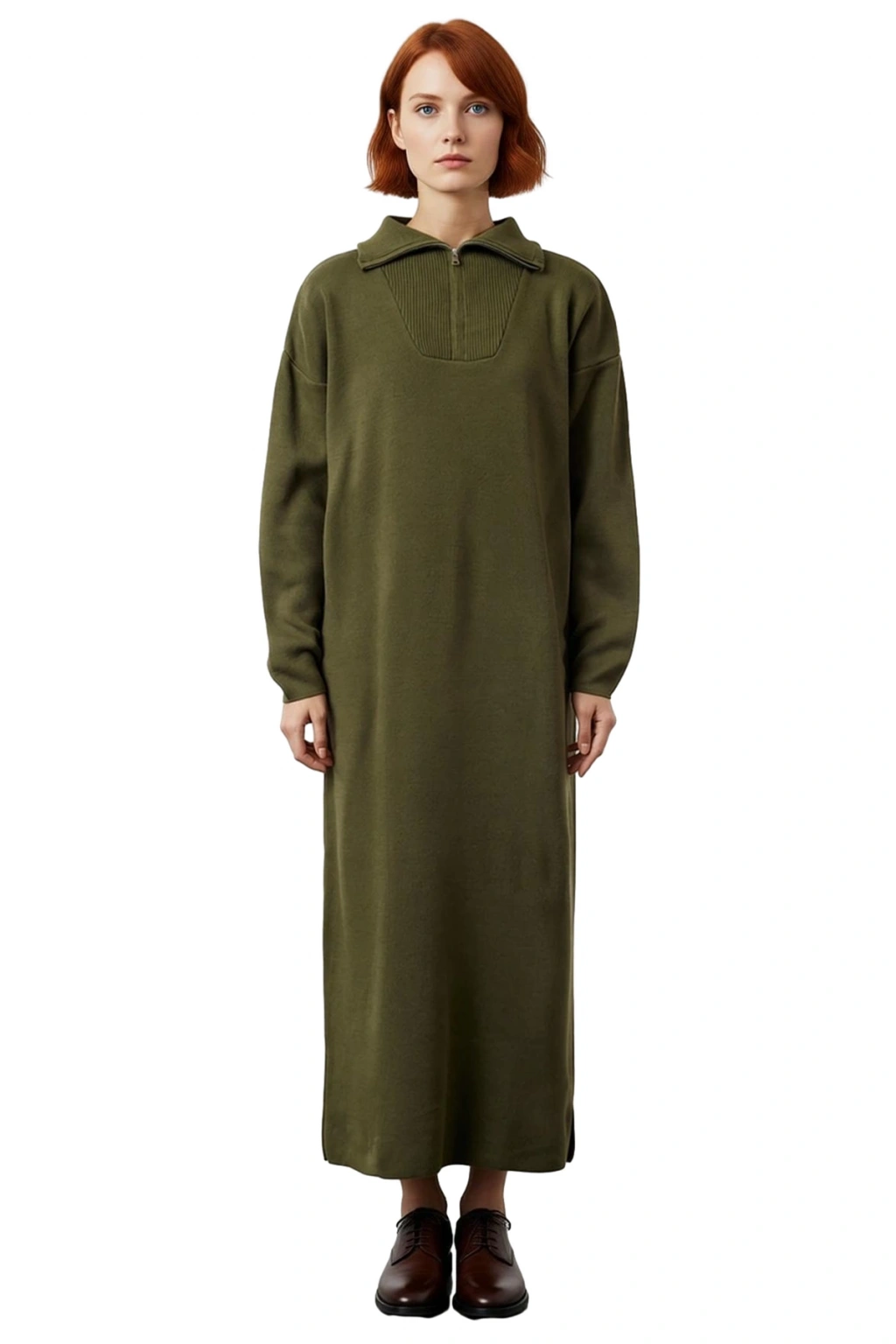 Maxi boyu ile modern ve uzun bir siluet sunan bu elbise, casual/günlük kullanım için tasarlanmıştır. Soğuk kış günlerinde, rahat bir çizme ve şık bir çanta ile kombinleyerek hem sıcak kalabilir hem de tarzınızı sergileyebilirsiniz. Shift kalıbı sayesinde farklı vücut tiplerine uyum sağlayan bu elbise, ofis ortamından hafta sonu gezintilerine kadar geniş bir kullanım alanına sahiptir. Kış ve sonbahar mevsimlerinin vazgeçilmezi olacak.