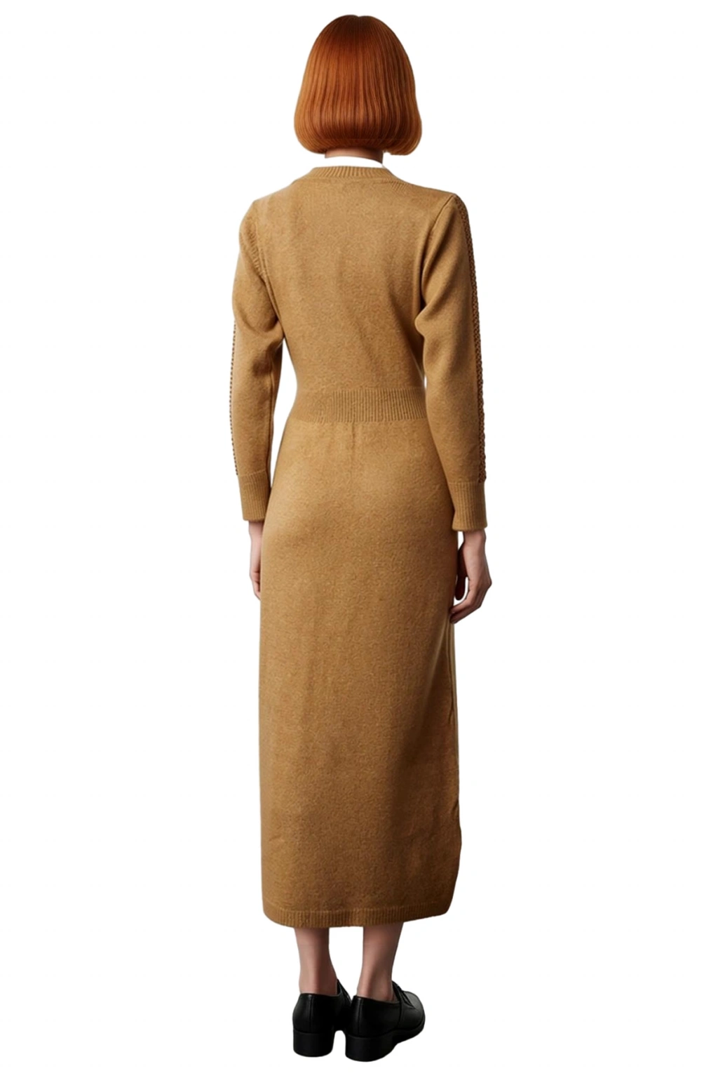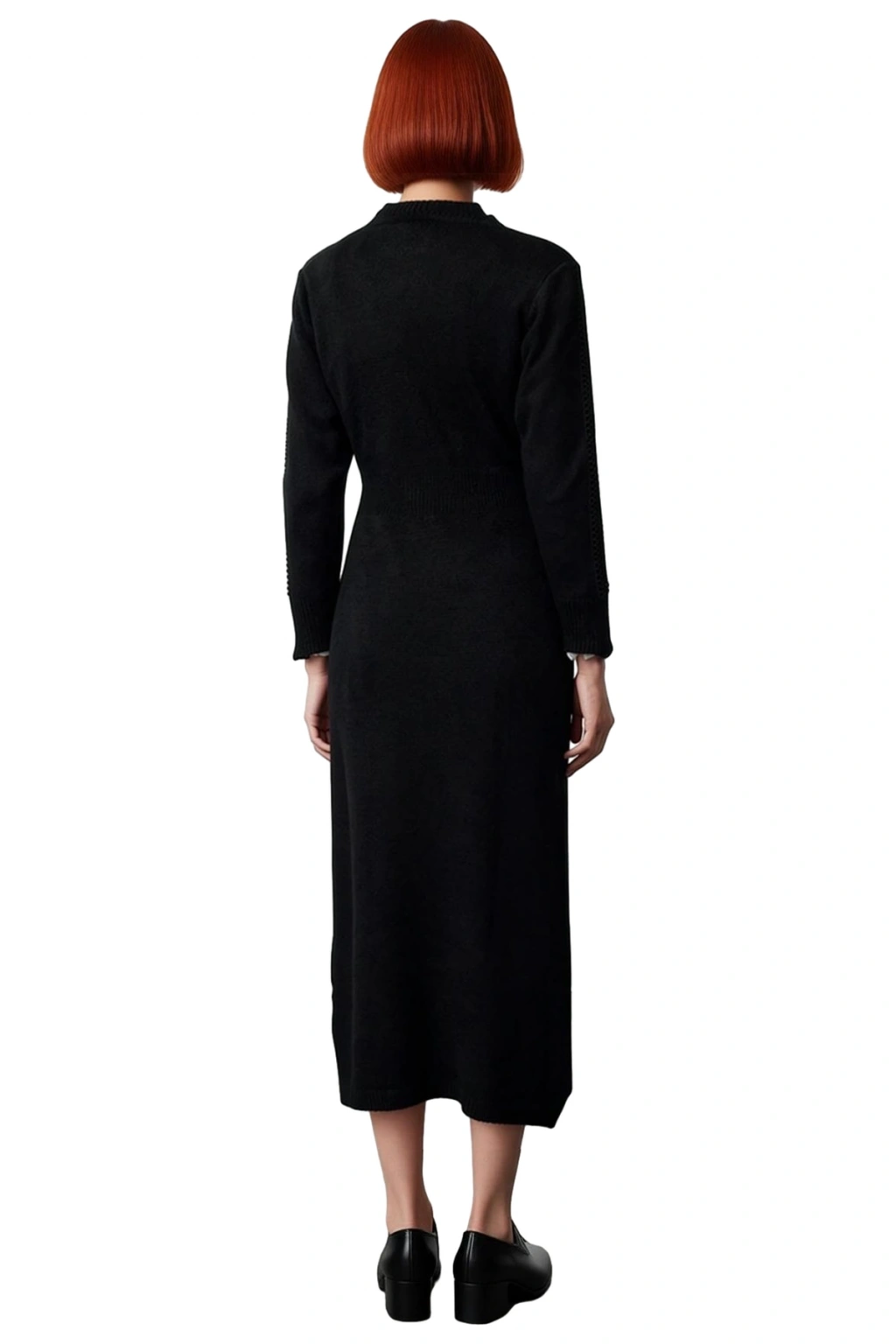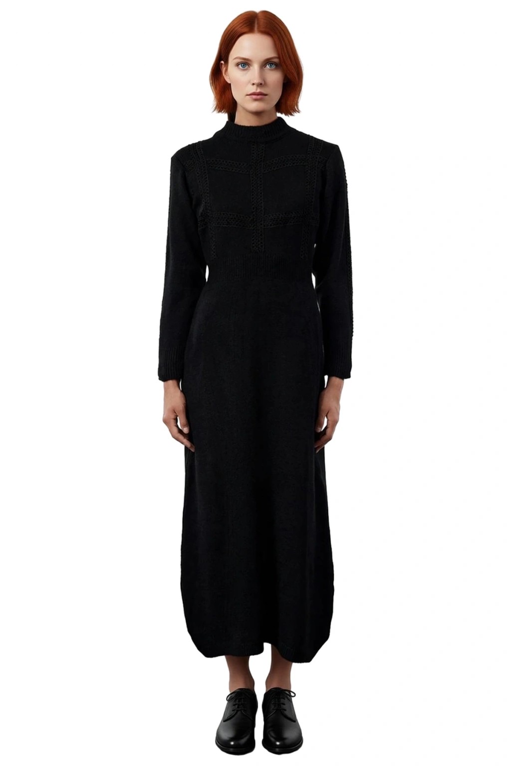 Dik yaka tipi, boynunuzu şık bir şekilde kapatarak kışın soğuk esintilerinden korurken, balon kol tipi ve uzun kol boyu elbiseye hacimli ve modern bir hava katıyor. Triko kumaşın esnek ve rahat yapısı, astarsız olmasına rağmen gün boyu konforlu bir kullanım vadeder ve hareket özgürlüğünüzü destekler. Cepsiz ve kemersiz sade tasarımı, elbisenin genel zarafetini vurgularken, Cool & Comfort persona özelliğiyle hem şık hem de rahat bir deneyim sunar. Bu kaliteli elbise, kolay bakım özelliği sayesinde makinede yıkanabilir ve uzun yıllar gardırobunuzun favori parçası olmaya devam eder.