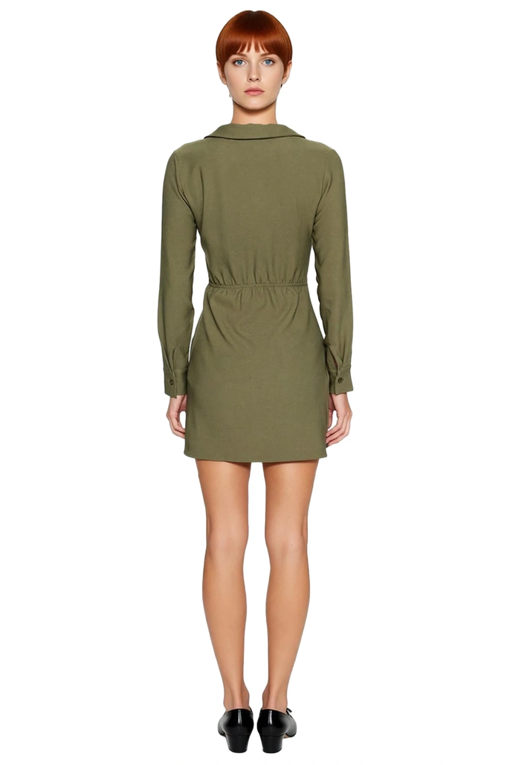 Ürün Özellikleri: A-line kalıp, dokuma materyal, düz desen, V yaka, standart kol, dokuma kumaş, haki renk.