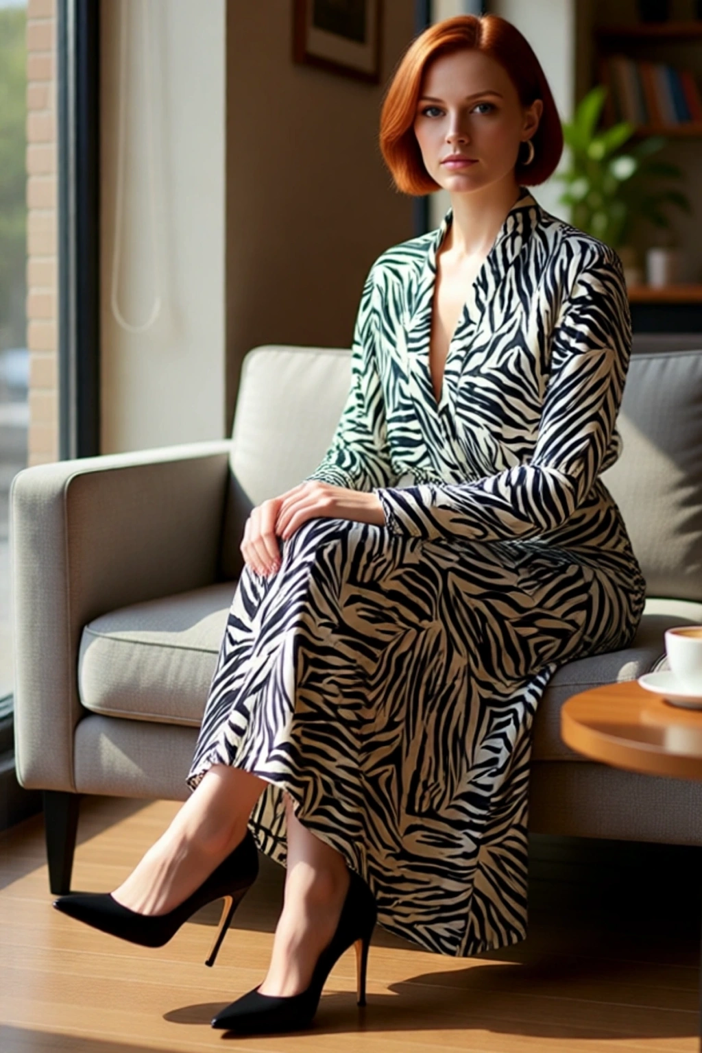 Zarif V yaka tasarımı, boynunuzu optik olarak uzatarak şık bir duruş sergilerken, standart uzun kolları mevsim geçişlerinde hem koruma hem de stil sağlar. Belmando dokuma tekniğiyle üretilen kumaşı, kalitesi ve dayanıklılığıyla öne çıkar. Astarsız yapısı sayesinde hafif ve konforlu bir kullanım sunarken, cepsiz oluşu elbiseye pürüzsüz ve kesintisiz bir estetik katar. Görseldeki baskısız olmasına rağmen, çarpıcı zebra deseniyle güçlü bir ifade oluşturan bu elbise, makinede yıkanabilir özelliği sayesinde bakımı kolay ve pratiktir, zamanınızdan tasarruf etmenizi sağlar.