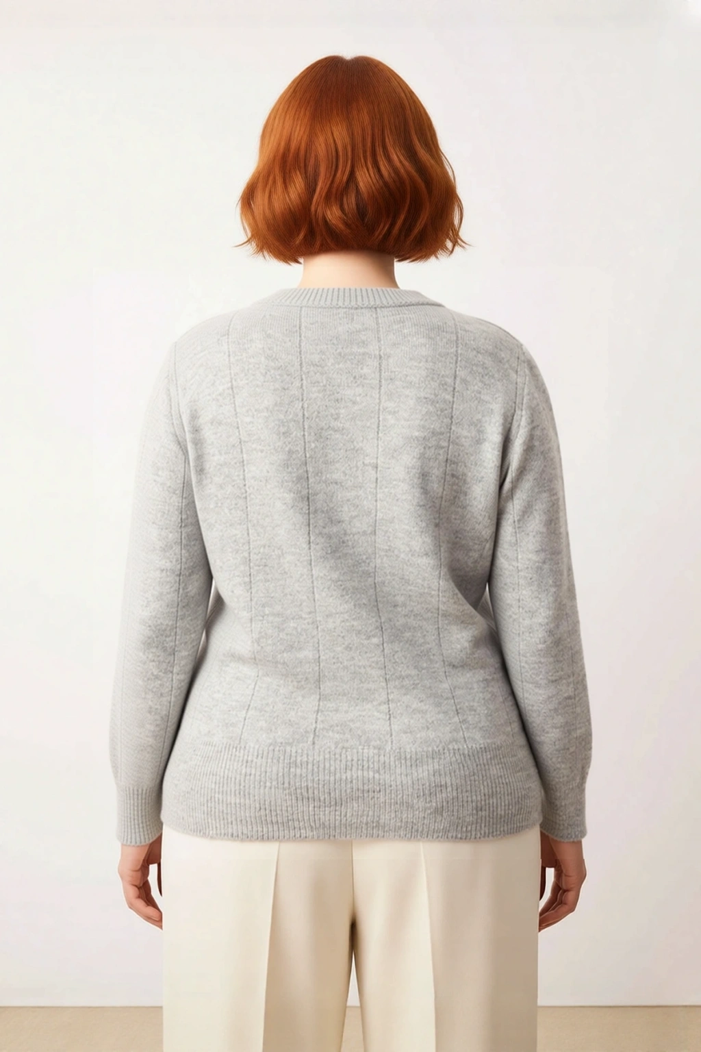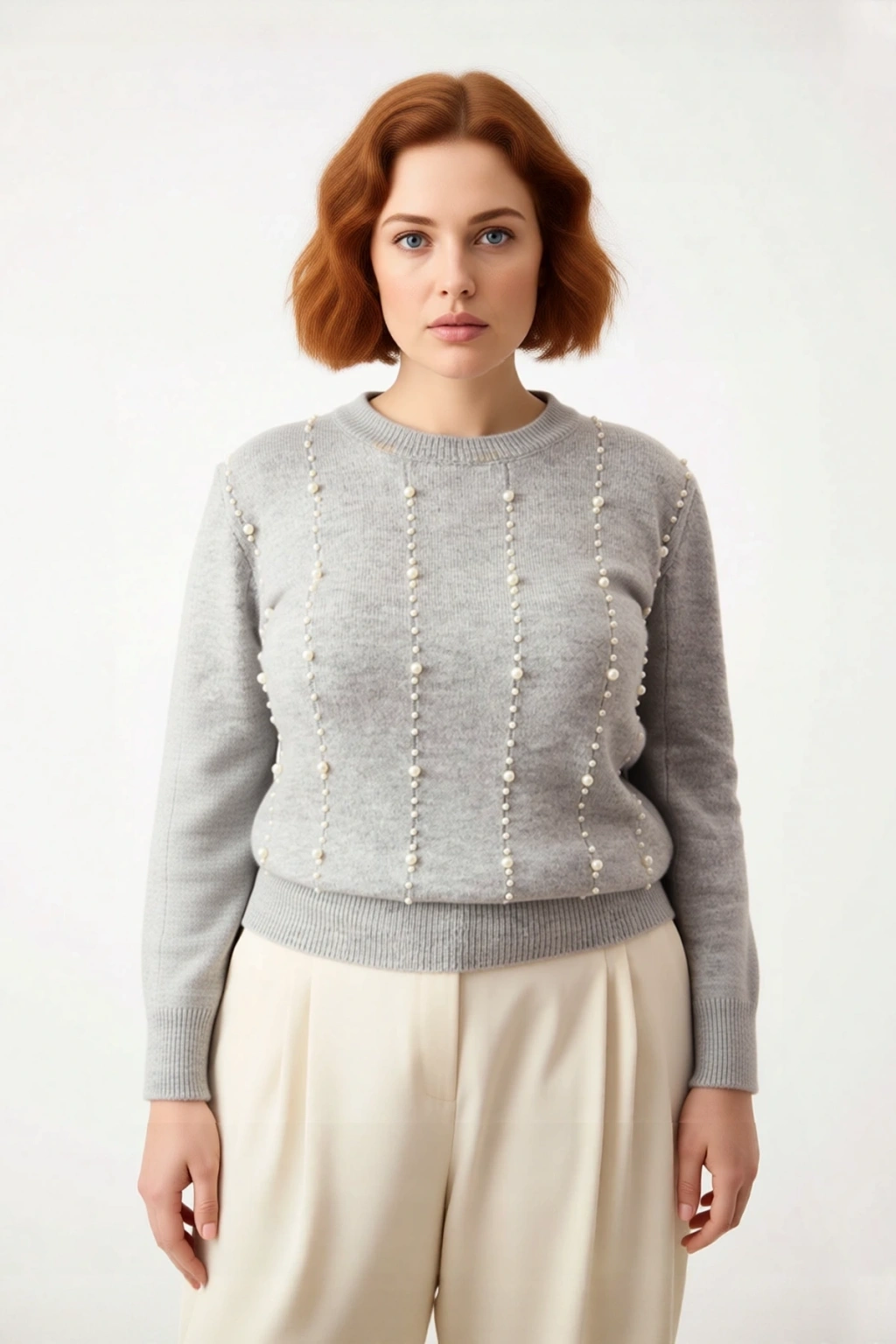 Ürün Özellikleri: Regular kalıp, 73% Akrilik 27% Polyester materyal, inci detaylı desen, bisiklet yaka, standart kol, triko kumaş, gri renk.
